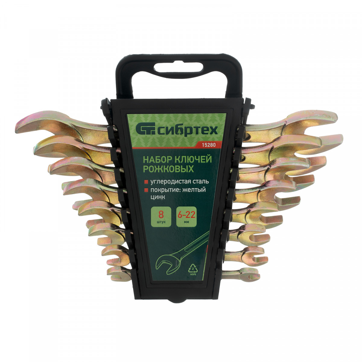 Набор рожковых ключей Сибртех 15280 размером 6-22 мм, с покрытием «желтый цинк», 8 штук в упаковке, используется для монтажа и демонтажа шестигранного резьбового крепежа соответствующего диаметра. Каждый ключ имеет две рабочие части с разным размером зева. Набор будет полезен в сервисном центре, авторемонтной мастерской, при выполнении монтажных работ. Пригодится также дома и на даче.