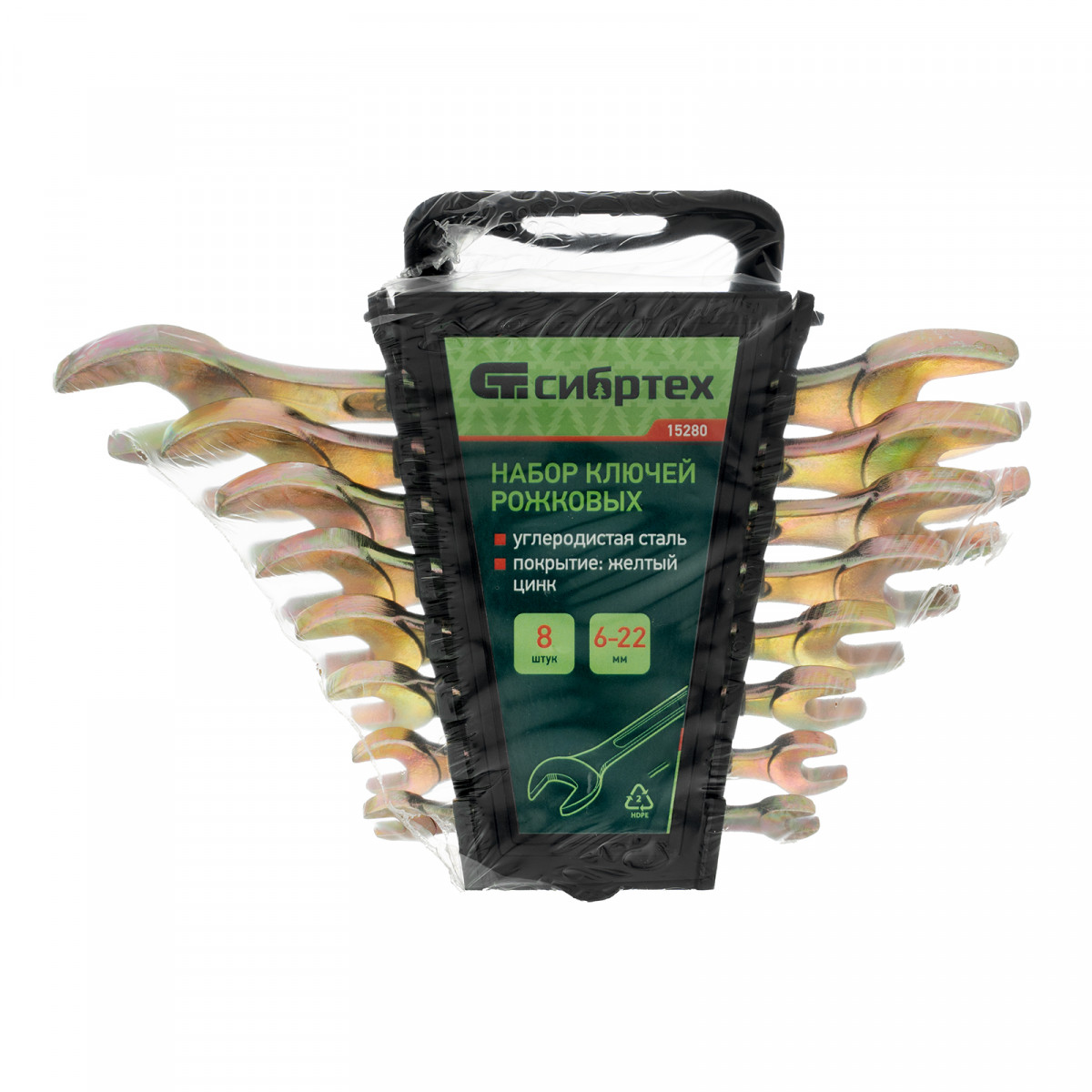 Набор ключей рожковых 6-22 мм, 8 шт, желтый цинк Сибртех