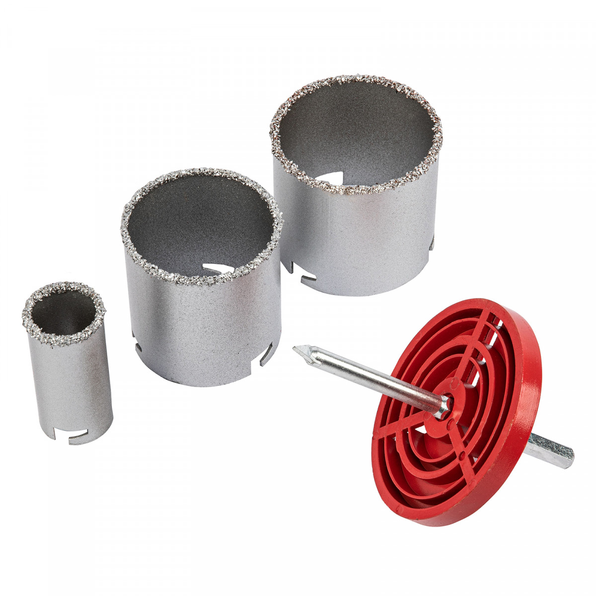 Набор коронок по керамической плитке Matrix 72841 с 6-гранным хвостовиком, 33-67-73 мм, позволяет осуществить сверление отверстий с помощью дрелей и шуруповертов. Он эффективно справляется с керамической плиткой, кирпичом, газосиликатом, гипсокартоном, ячеистым бетоном и пенобетоном. Набор станет незаменимым помощником для частных мастеров. Рекомендуется использовать водяное охлаждение и работать в безударном режиме для предотвращения поломки коронок.1)Универсальный - применяется для сверления отверстий в керамической плитке, пенобетоне, газосиликате, кирпиче, гипсокартоне.2)Быстрая смена коронки - благодаря универсальной державке и специальной формы хвостовика коронки смена коронок проходит за несколько секунд3)Выгодная цена - в наборе только самые ходовые размеры коронок d 33, 67, и 73 мм.4)Высокий ресурс - рабочая часть коронок и пластина центрирующего сверла выполнена из износостойкого сплава карбида вольфрама (ВК6)5)Высокая точность - благодаря центровочному сверлу сверление производится максимально точно 6)Защита от коррозии -корпус коронок и державки покрыт эмалью для защиты от коррозии.