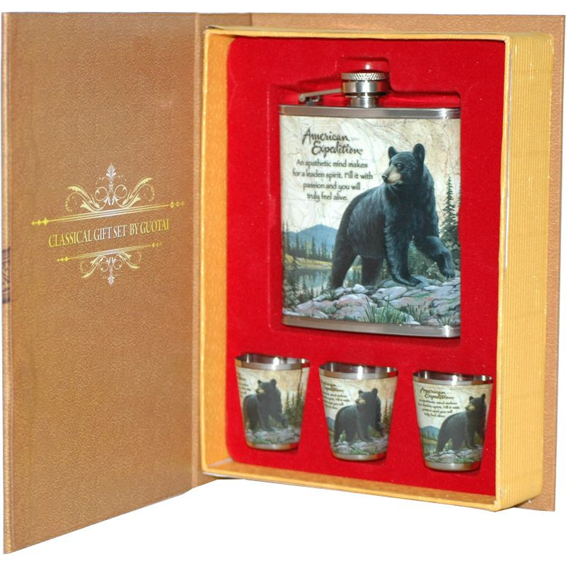 Подарочный набор А03 в коробке - это набор 4 в1 в красочной коробке: фляжка 210 мл и 3 стопки.