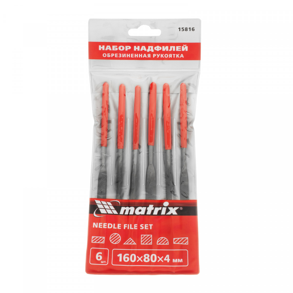 Набор надфилей, 160 х 4 мм, 6 шт, обрезиненные рукоятки Matrix