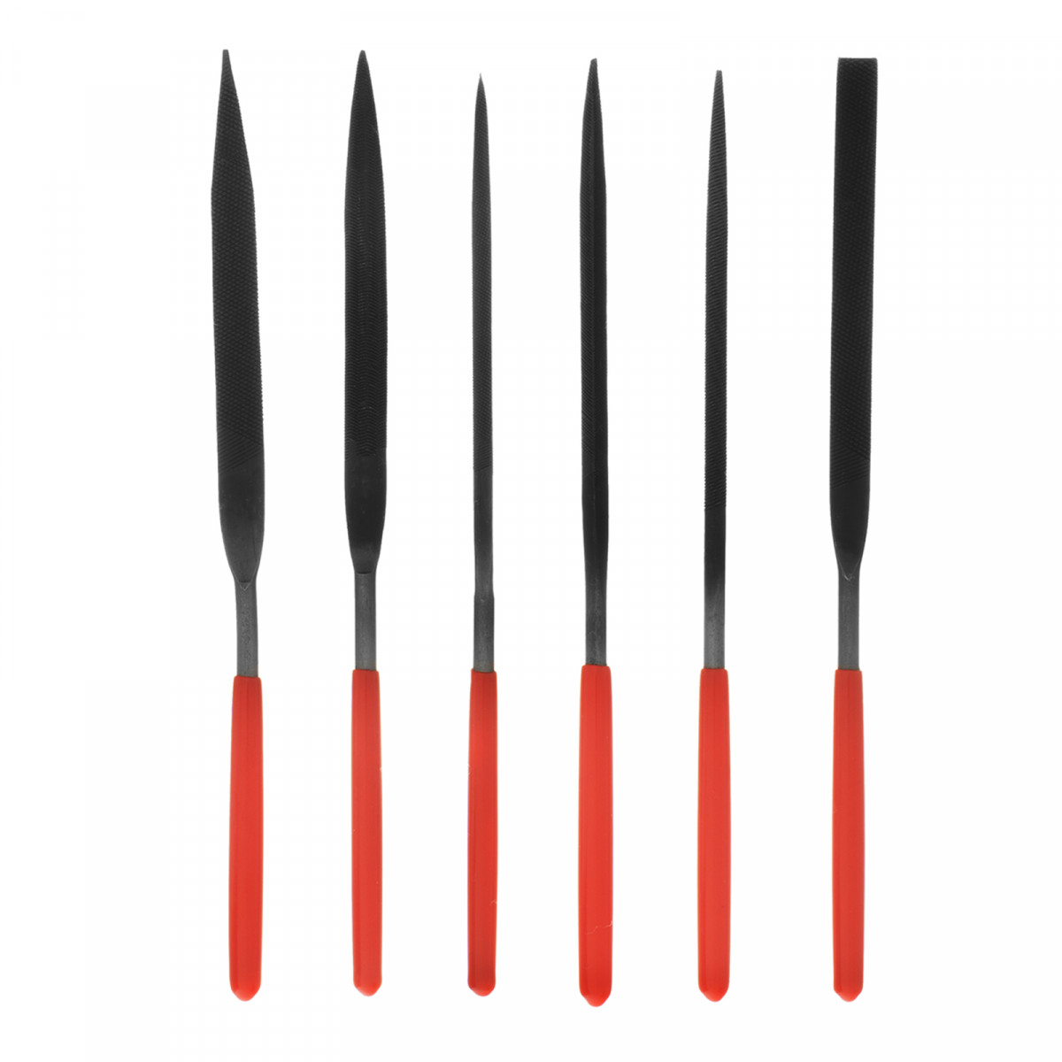Плоский тупоносый надфиль - 1 штПлоский остроносый надфиль - 1 штКвадратный надфиль - 1 штТрехгранный надфиль - 1 штТрехгранный односторонний надфиль - 1 штКруглый надфиль - 1 шт