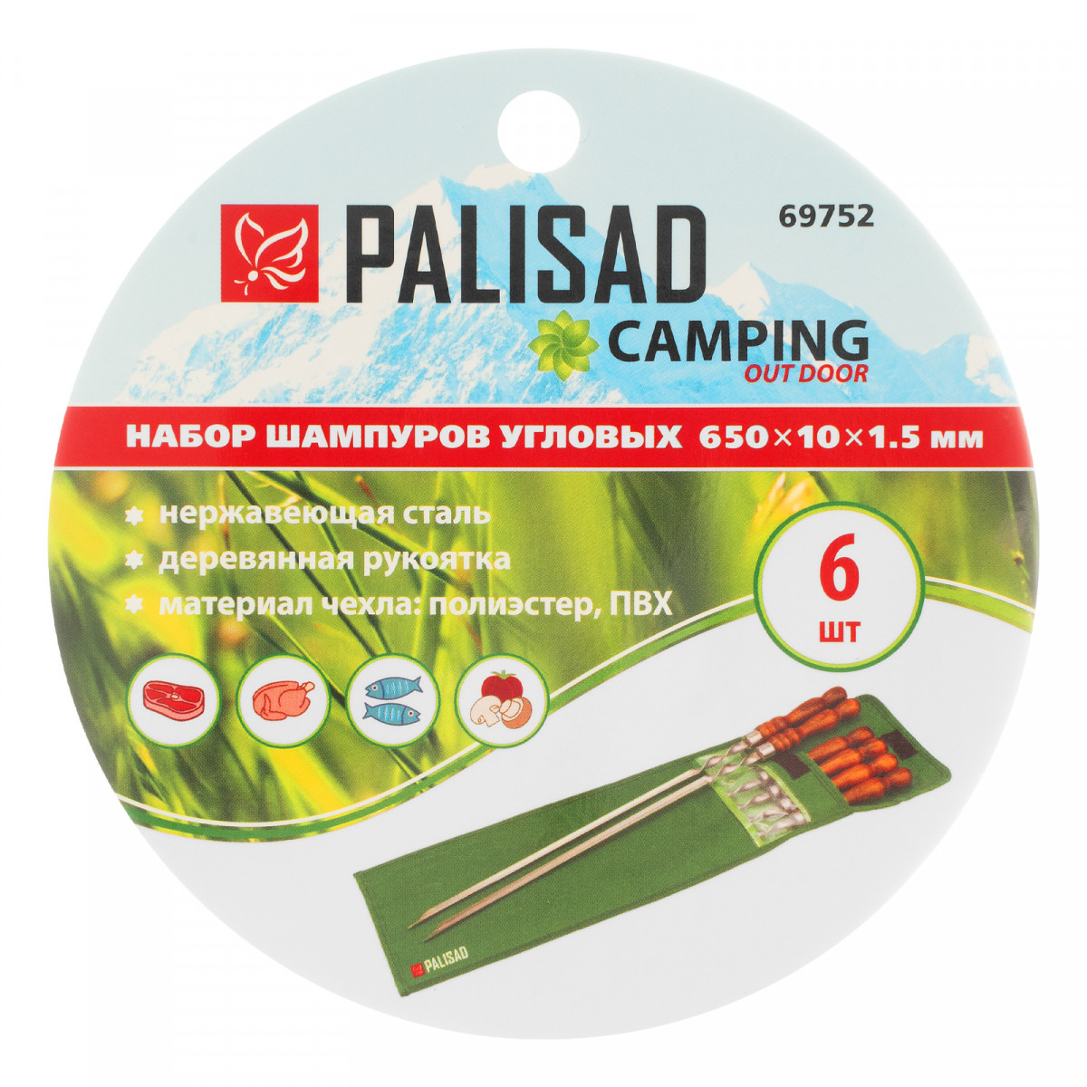 Набор шампуров угловых, 650 мм, с деревянной рукояткой, в чехле, 6 шт., Camping// Palisad