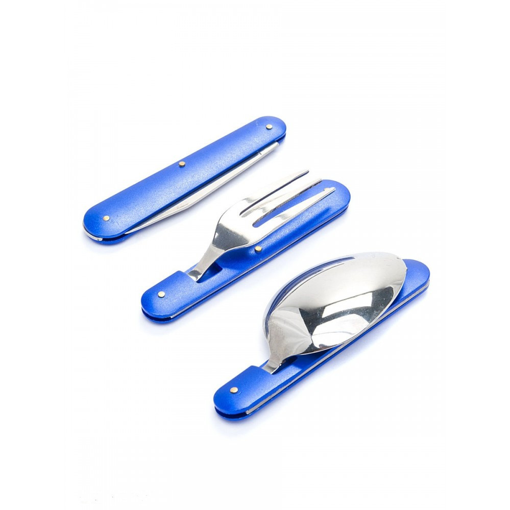 Удобный набор из ложки, вилки и ножа, складывающихся в компактном чехле.