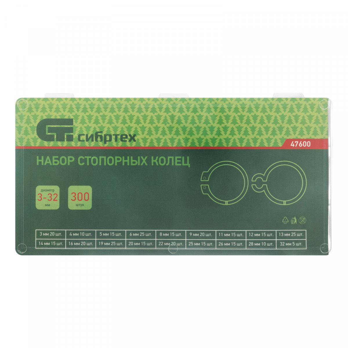 Набор стопорных колец, D 3-32 мм, 300 предметов Сибртех