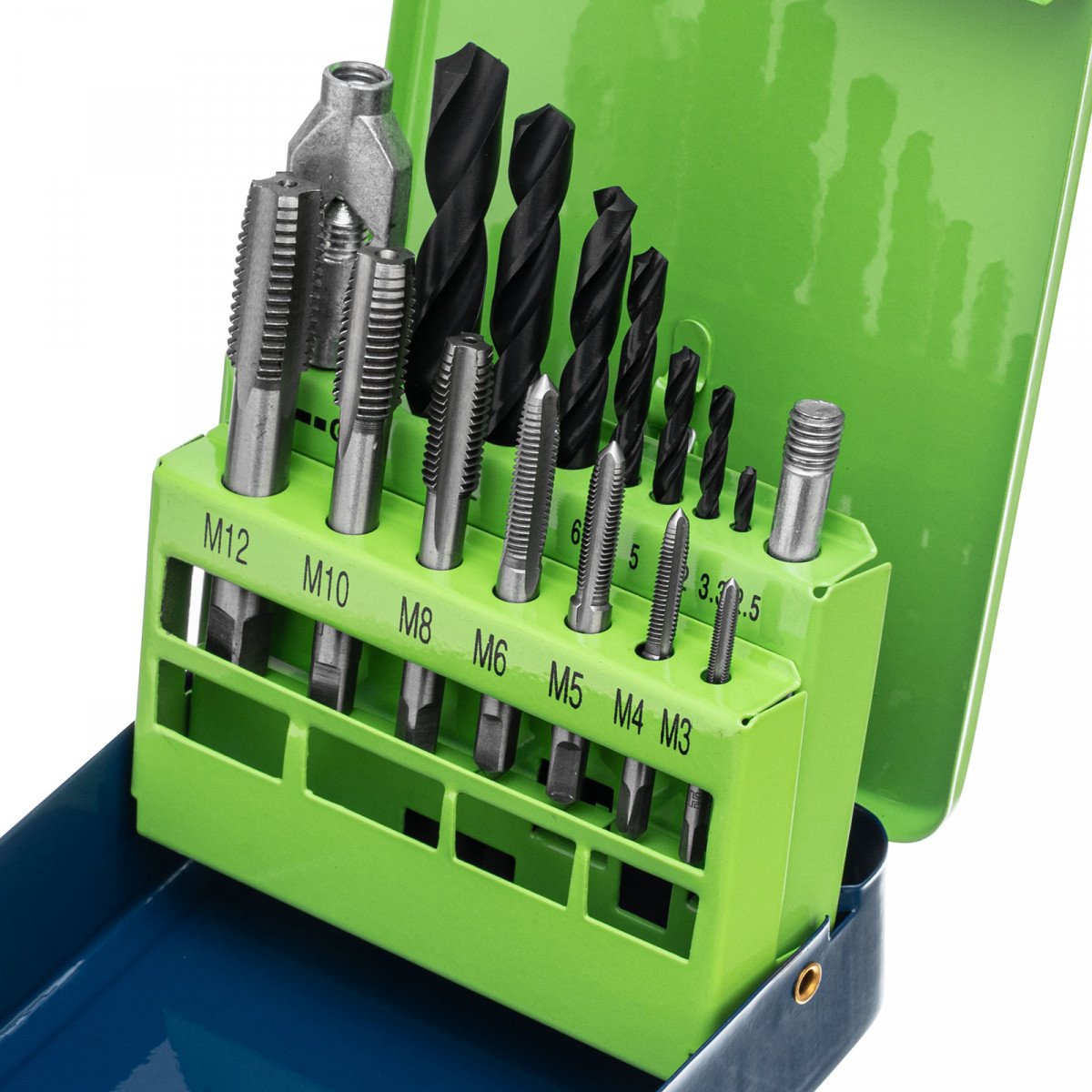 Набор Сибртех 77305 включает 15 предметов — метчики размером М3-М12, сверла диаметром 2,5-10,2 мм и метчикодержатель. В комплекте имеется все необходимое для создания сквозных и глухих отверстий, а также для ручной нарезки в них внутренней резьбы диаметром от М3 до М12. Инструменты подходят для обработки деталей из сталей и цветных металлов. Диаметр сверл подобран под размер метчиков. Набор будет полезен на производстве, в автосервисе, пригодится также в быту.