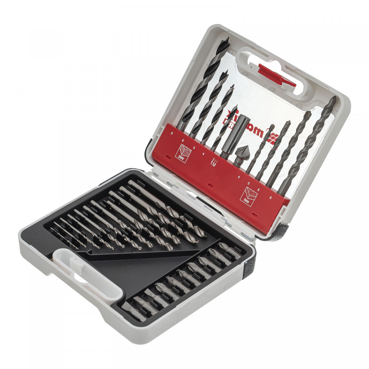 • Прочность и долговечность — адаптер выполнен из углеродистой стали, биты — из хромованадиевой стали, сверла по металлу — из стали Р6М5, а сверла по дереву — из стали 45.