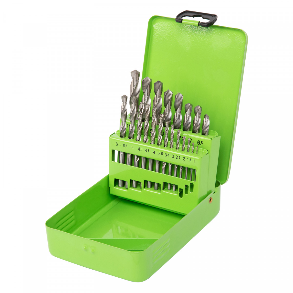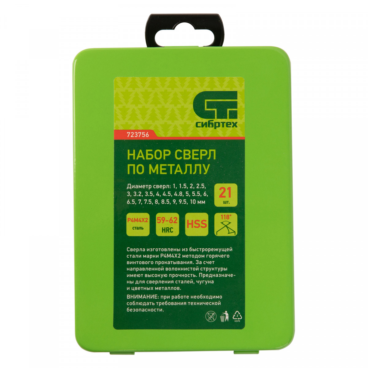 Набор сверл по металлу, 1-10 мм, (через 0.5 мм +3.2 и 4.8 мм) HSS 21 шт, металлический бокс, цилиндрический хвостовик Сибртех