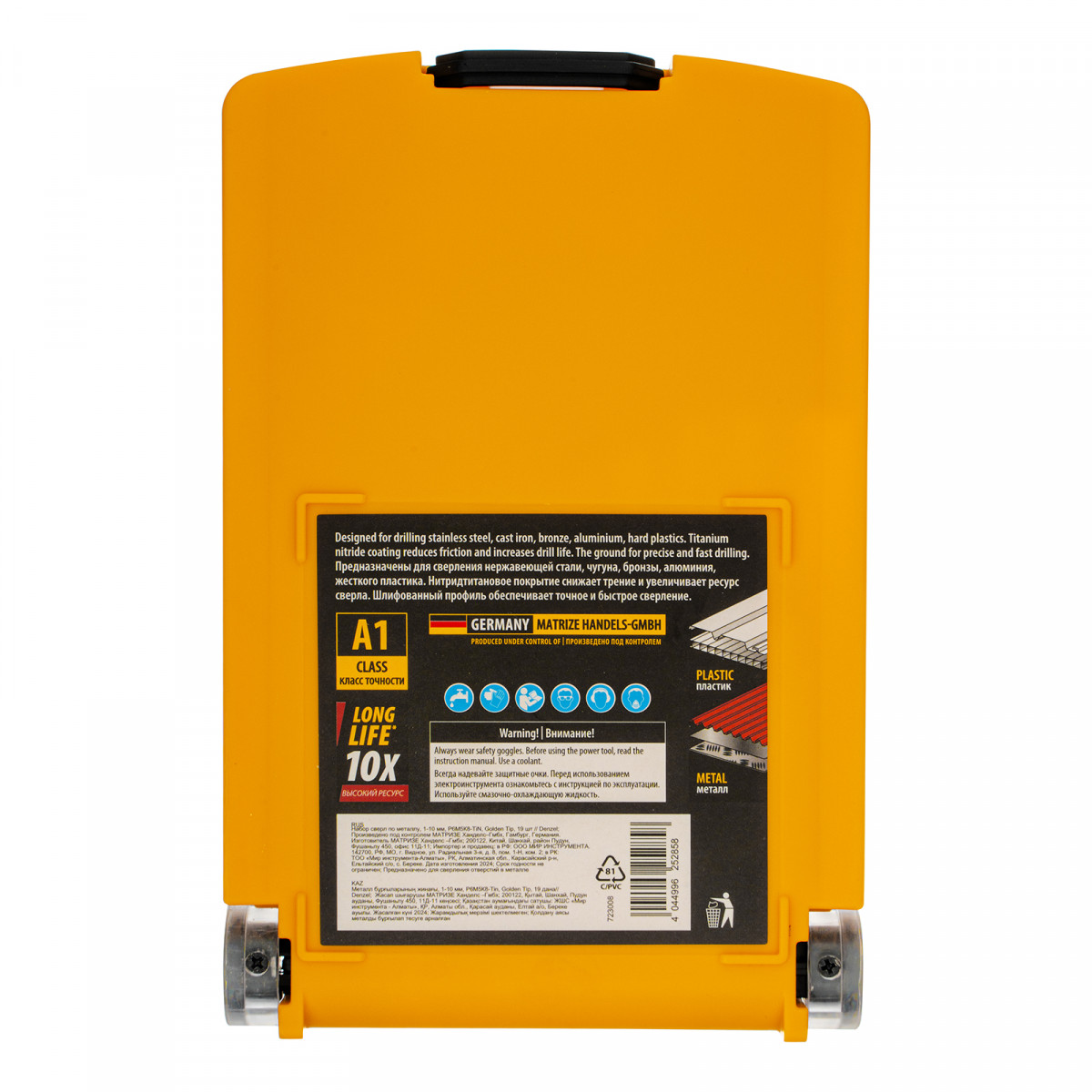 Набор сверл по металлу, 1-10 мм, Р6М5К8-TiN, Golden Tip, 19 шт Denzel