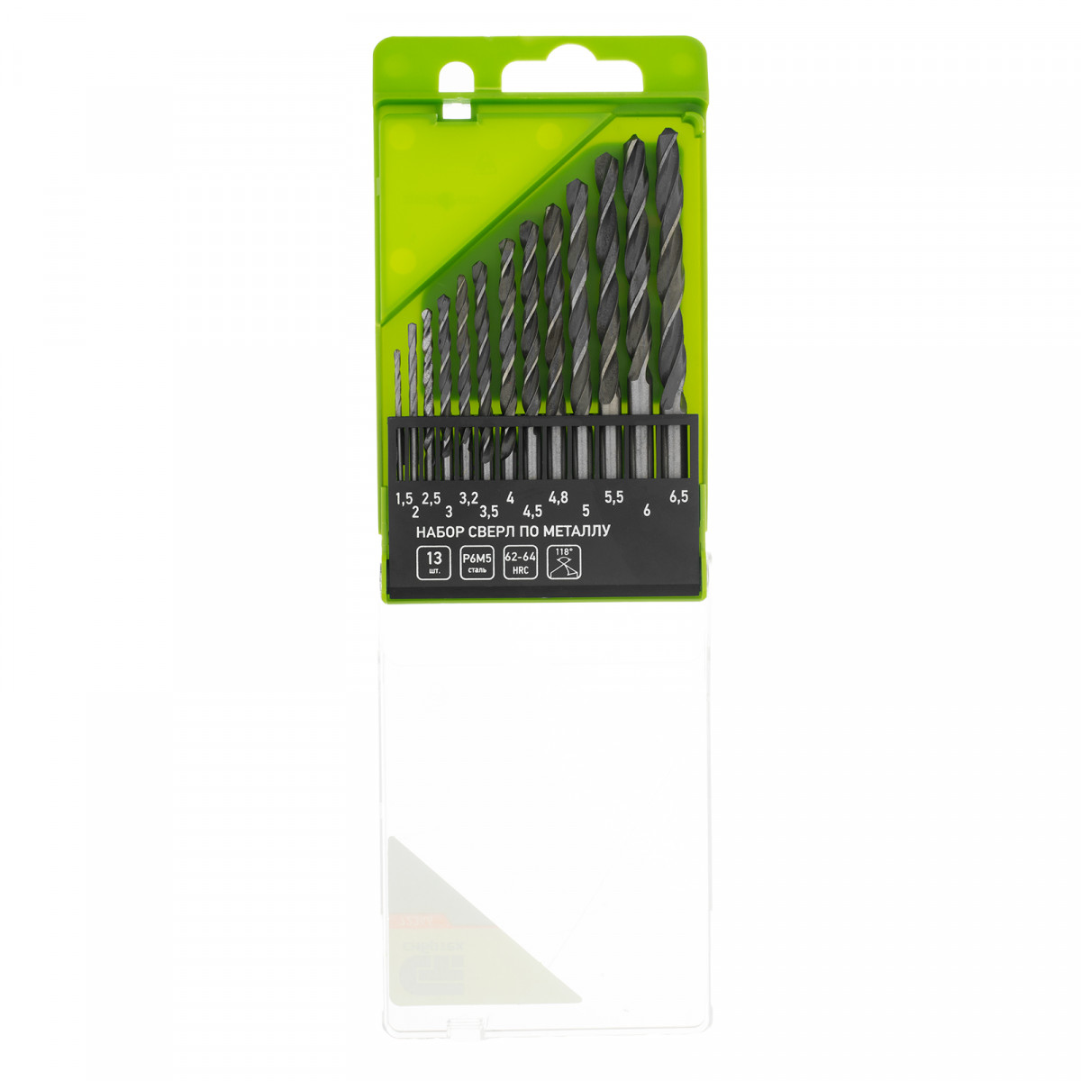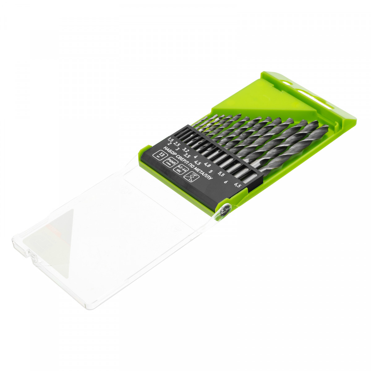 Сверло по металлу 1,5, 2, 2,5, 3, 3,2, 3,5, 4, 4,5, 4,8, 5, 5,5, 6, 6,5 - 13 штПластиковый кейс - 1 шт
