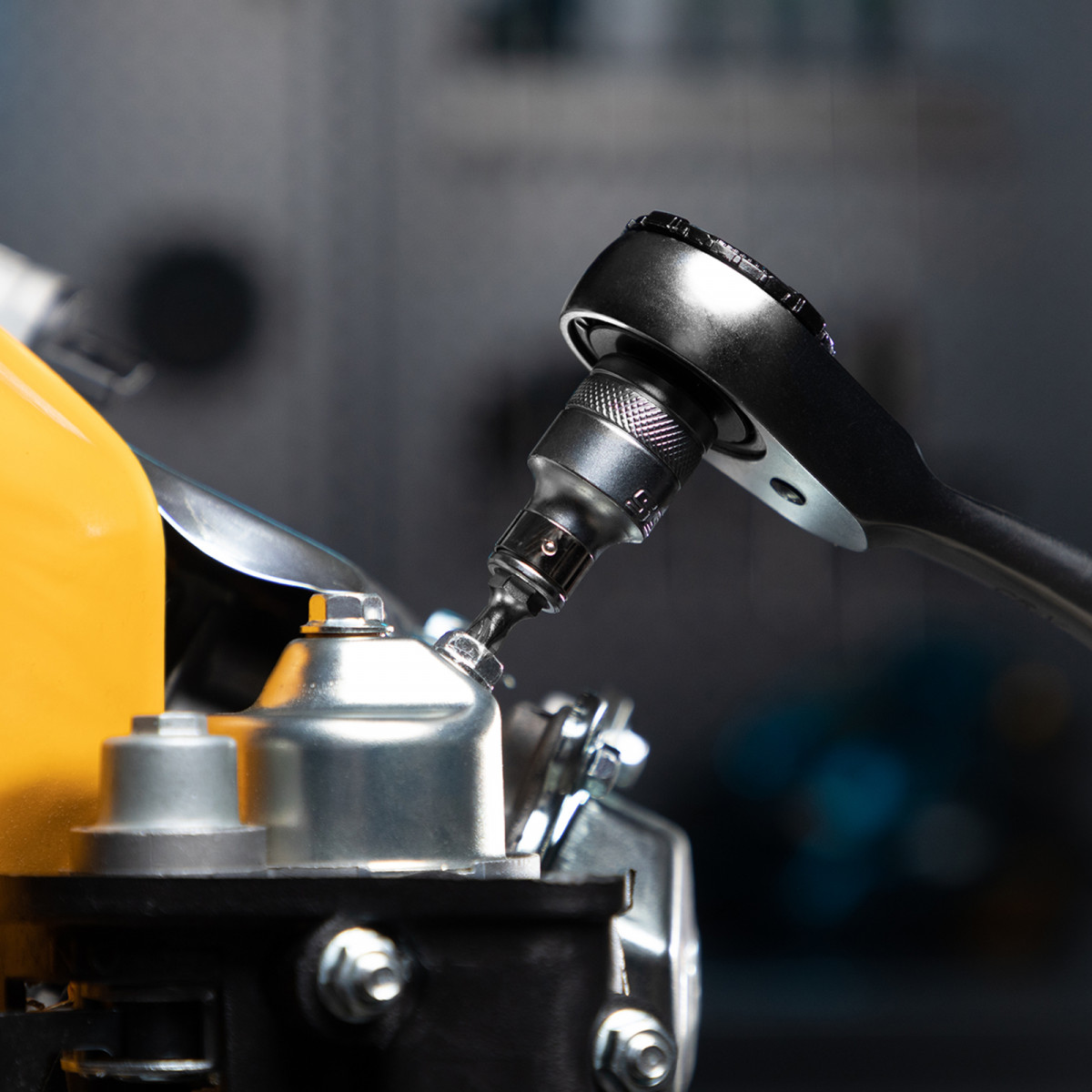 • Удобная работа в труднодоступных местах — цельнокованая трещотка со 120 зубьями позволяет вращать крепеж максимально плавно и мягко.