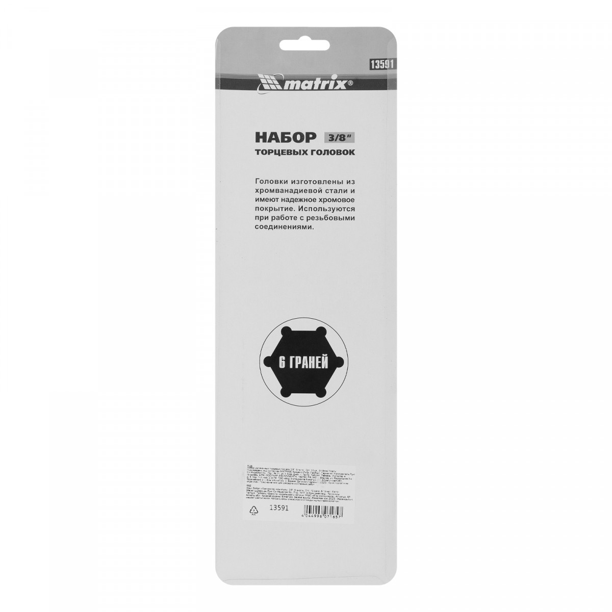 Набор удлиненных торцевых головок Matrix 13591 включает в себя 10 шестигранных насадок 8-19 мм, из стали CrV, с присоединительным квадратом 3/8", предназначенных для работы с резьбовыми соединениями. Торцевые головки с увеличенной длиной применяются для закручивания и откручивания крепежа в труднодоступных местах, а также для извлечения свечей зажигания. Набор востребован у автослесарей, сантехников, а также будет полезен в бытовой сфере.