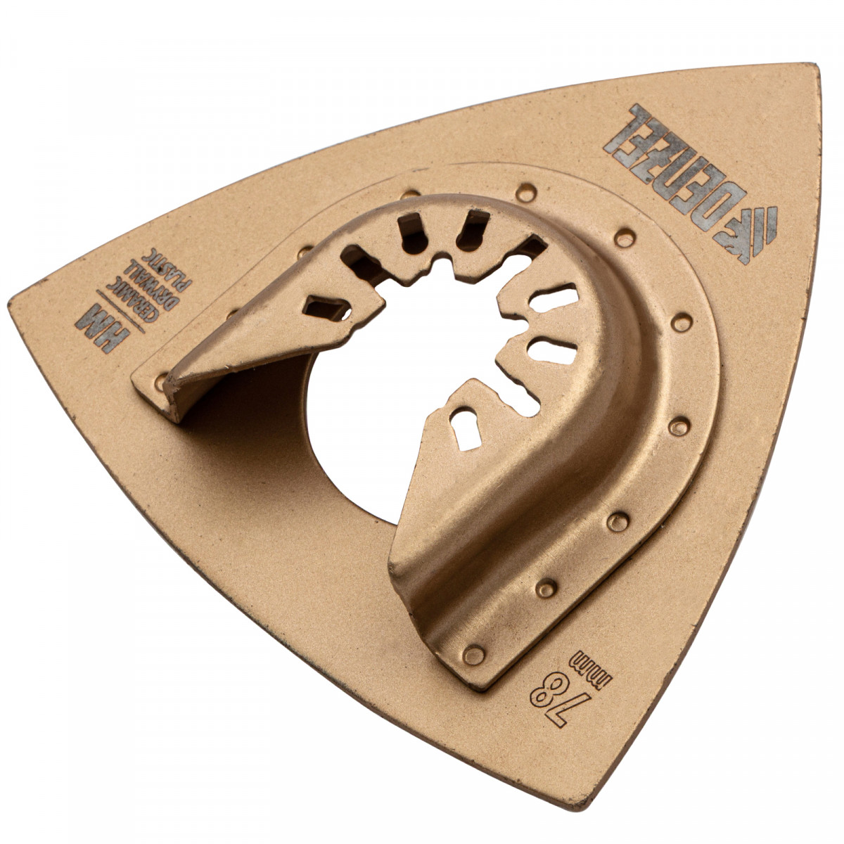 Шлифовальная дельтовидная насадка для МФИ Denzel 782323, 78 мм, из стали HM, пригодится при проведении шлифовальных работ по плитке, дереву, кирпичу и камню. С ее помощью можно подготовить поверхности к последующей отделке: удалить раствор и клей из плиточных швов, снять фаски и заусенцы и др. Насадка подходит для профессионального применения, т.к. рассчитана на интенсивные механические нагрузки за счет повышенного содержания марганца в составе стали.