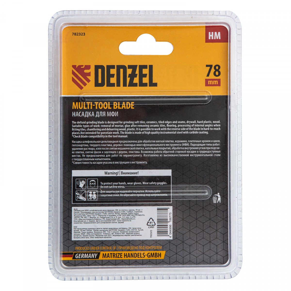 Насадка для МФИ шлифовальная дельтавидная, HM, по плитке и дереву, 78 мм Denzel