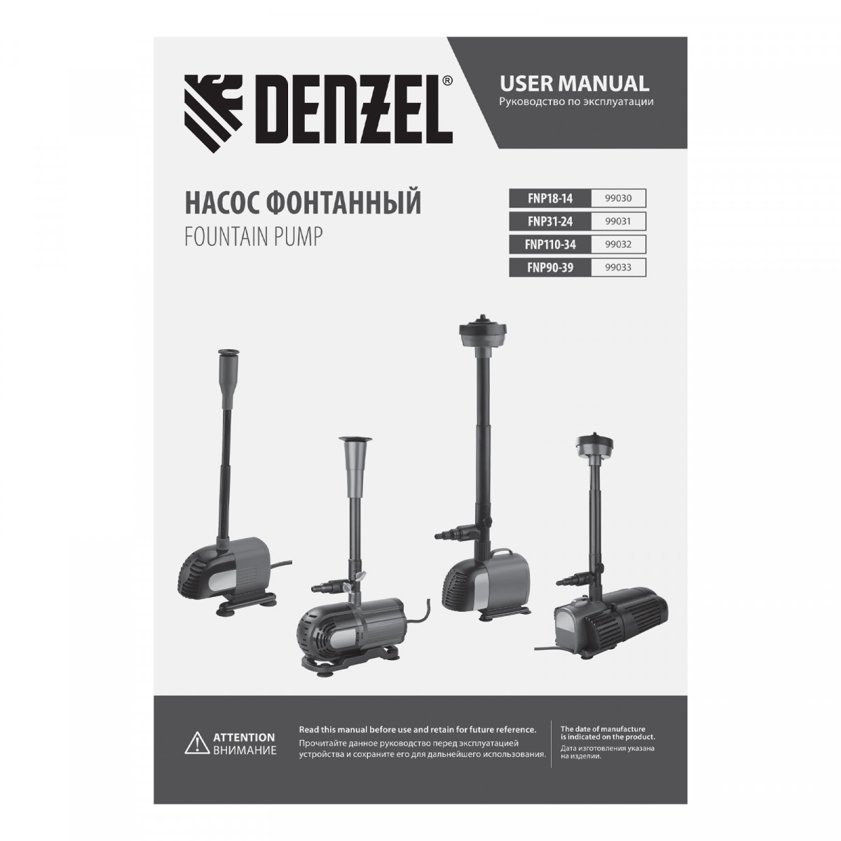 Насос фонтанный FNP31-24, 31 Вт, подъем 2,4 м, 1500 л/ч, колокольчик/2 каскада/гейзер Denzel