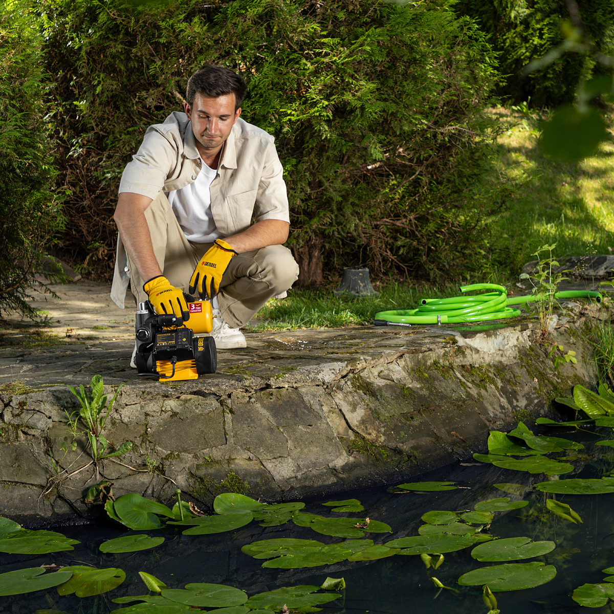 Насосная станция Denzel PS500C 97249 мощностью 500 Вт, с блоком управления и ресивером объемом 2 л, способна перекачивать 2200 л чистой воды в час и обеспечивает напор до 35 м. Возможен забор воды с глубины до 7 м из колодцев, скважин и других источников. Надежный асинхронный двигатель позволяет поддерживать стабильное давление в напорной магистрали в течение длительного времени. Станция позволяет организовать систему бытового водоснабжения на даче.