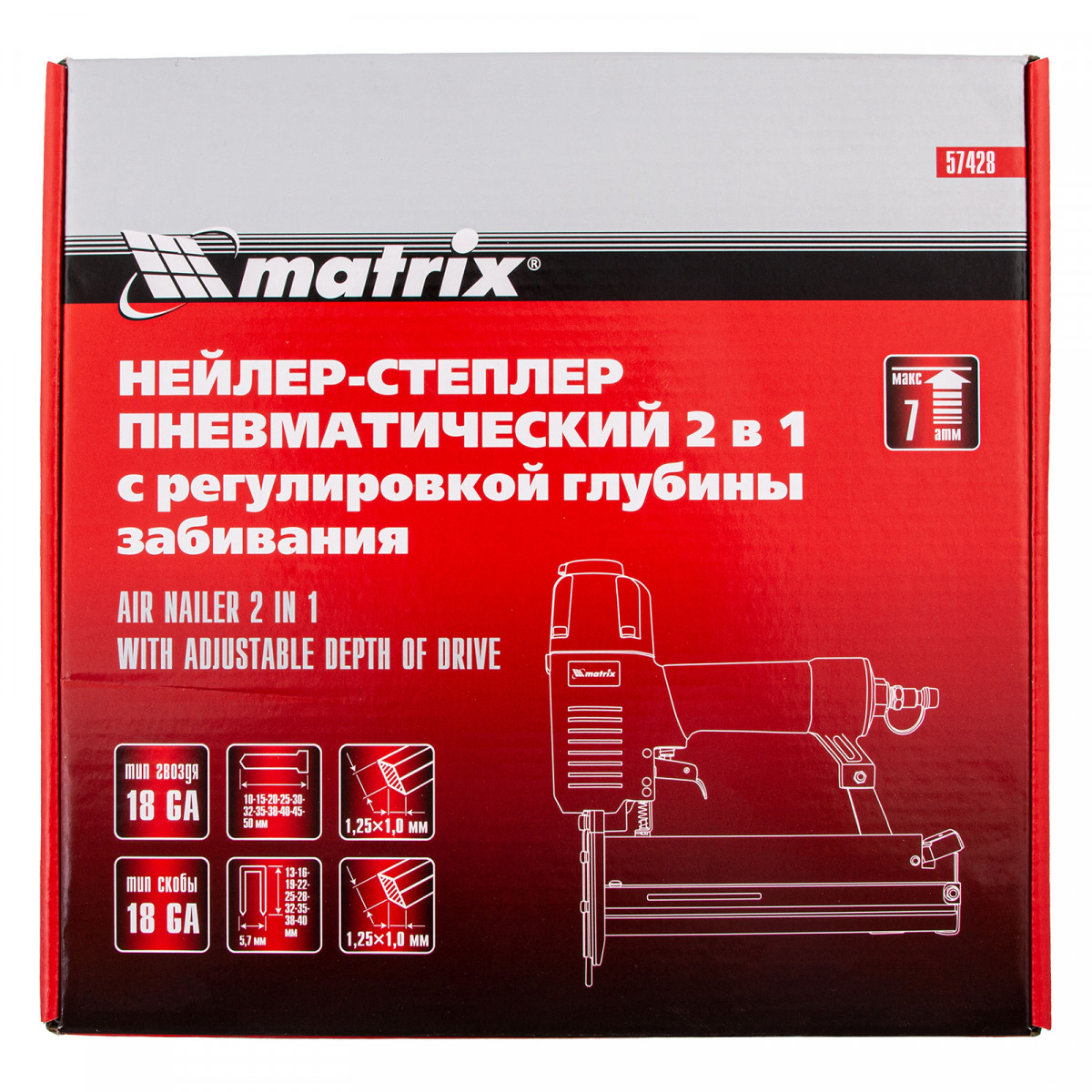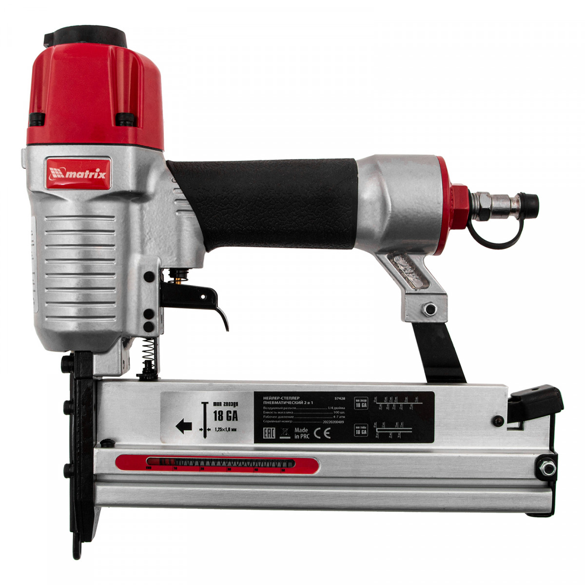 Нейлер-степлер пневматический 2 в 1, с регулировкой глубины забивания, гвозди 18GA, скобы 18GA Matrix