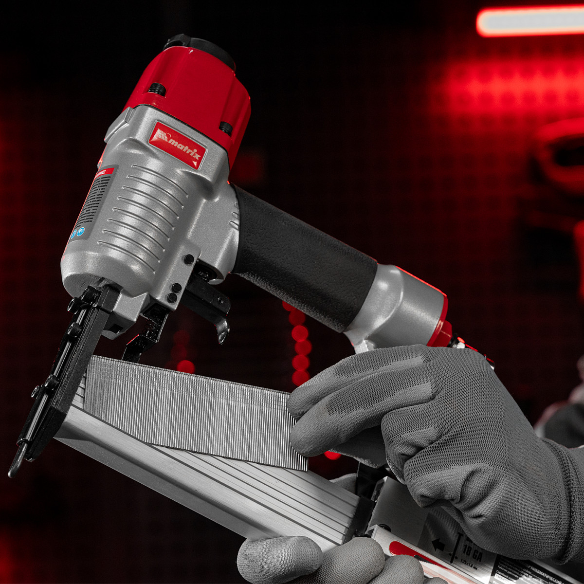 • Индикатор заполнения магазина — можно отслеживать количество крепежей для своевременной зарядки инструмента.