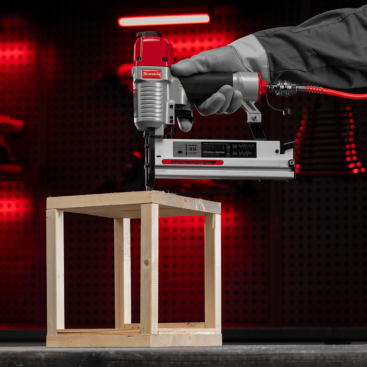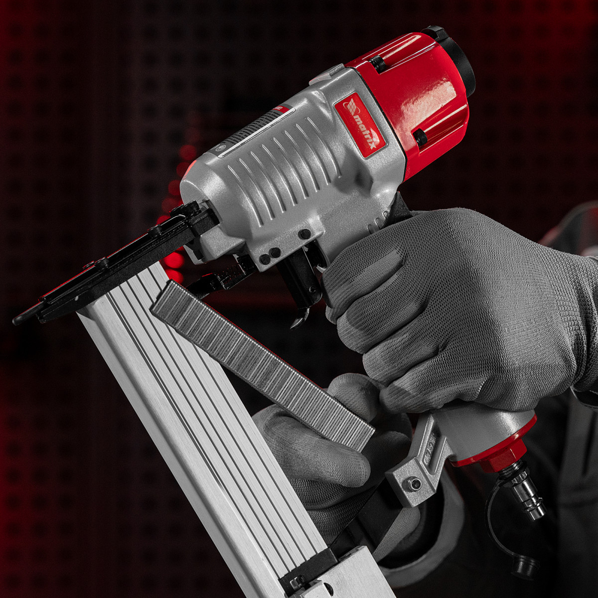 • Малый вес 1,33 кг — длительная работа со степлером-нейлером не вызывает дискомфорт.