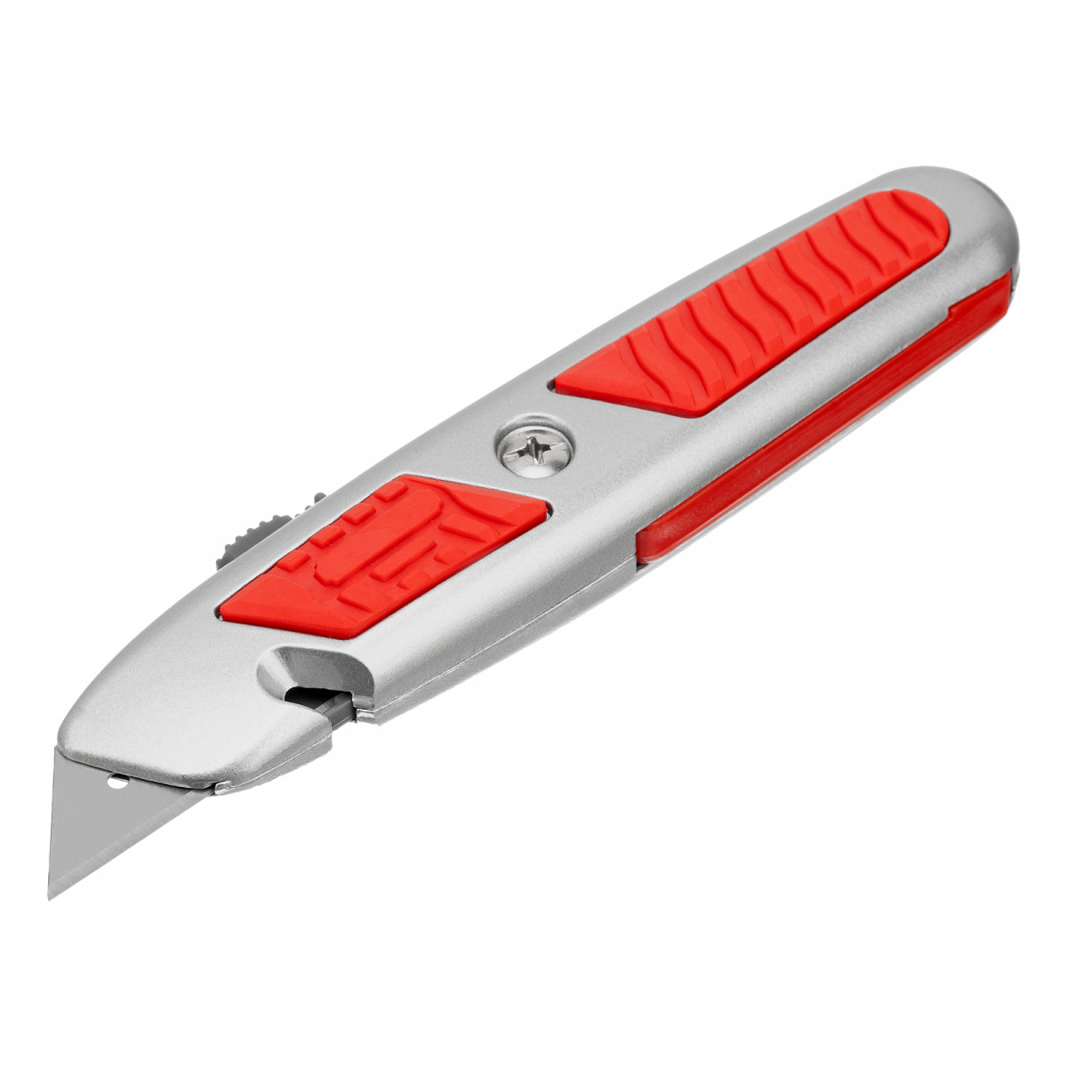 Нож Matrix 78967 с выдвижным трапециевидным лезвием и отделением для лезвий, в металлическом корпусе, режет бумагу, картон, кожу, линолеум и обои. Может применяться в качестве стропореза: для этого в корпусе предусмотрена специальная выемка. Лезвие сменное, артикул совместимых расходников 793555. Металлический корпус выдерживает значительные усилия. Нож будет полезен во время проведения строительных и отделочных работ, а также пригодится в быту.