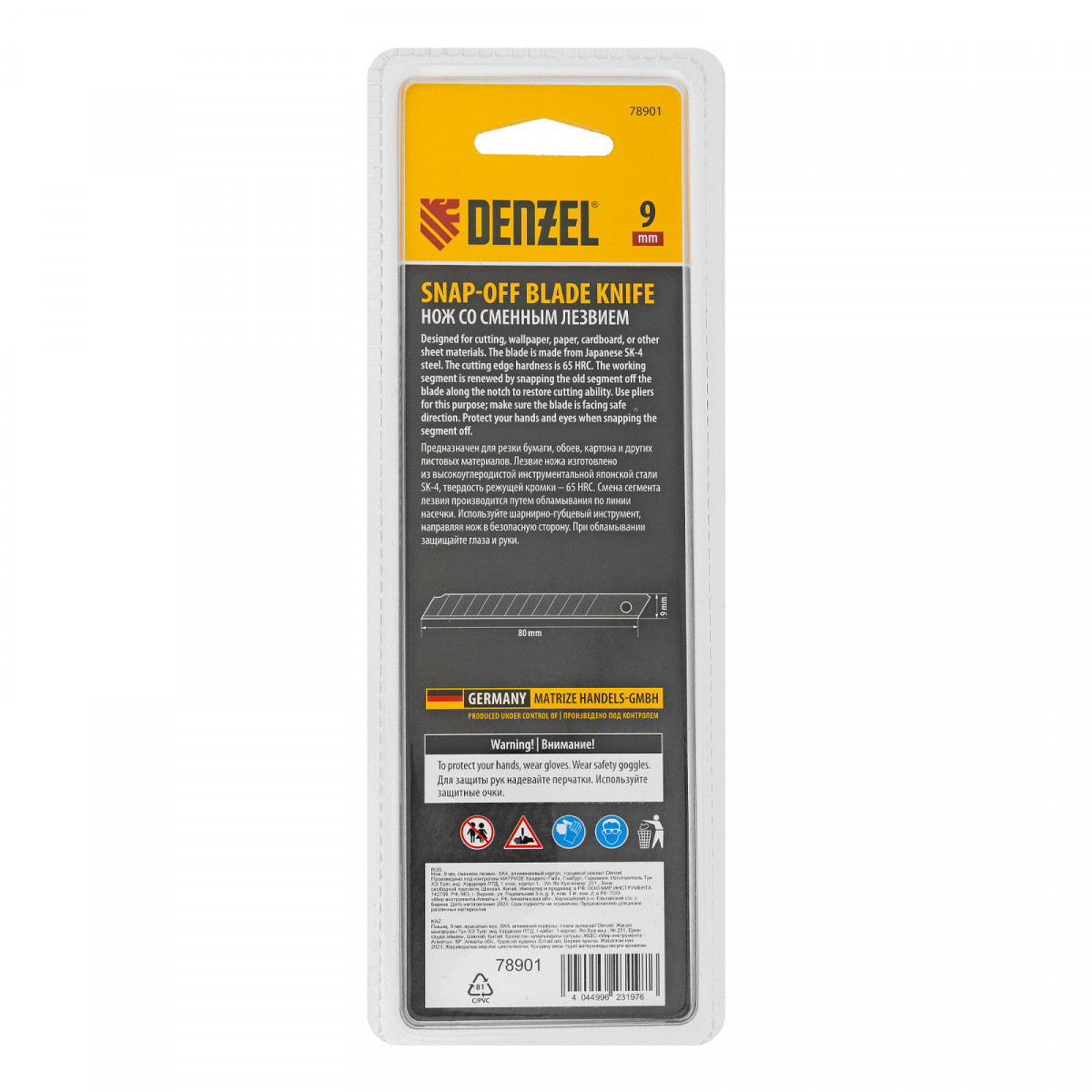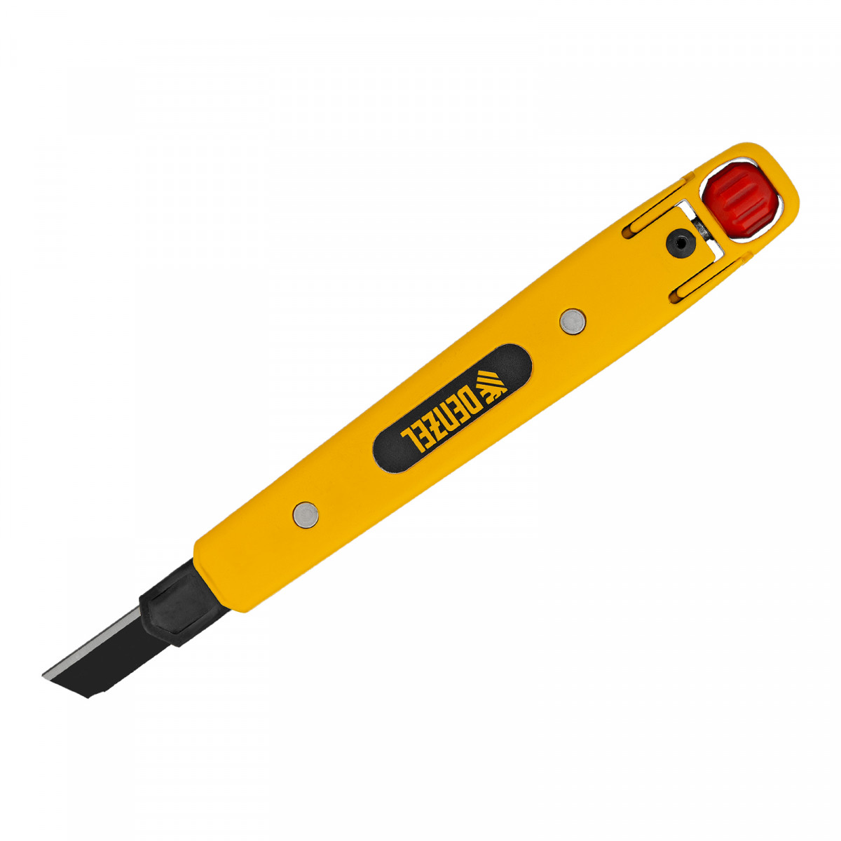 Нож, 9 мм, сменное лезвие, SK4, алюминиевый корпус, торцевой зажим Denzel