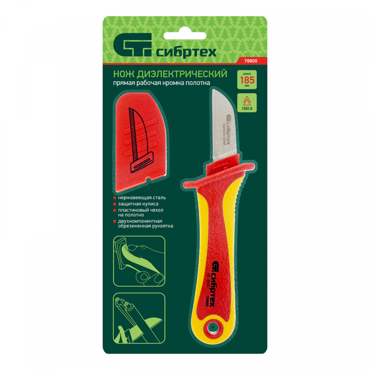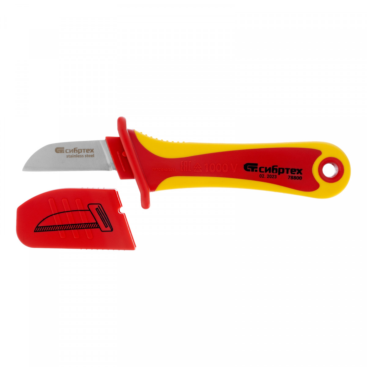 Нож диэлектрический до 1000 В, прямая рабочая кромка полотна Сибртех
