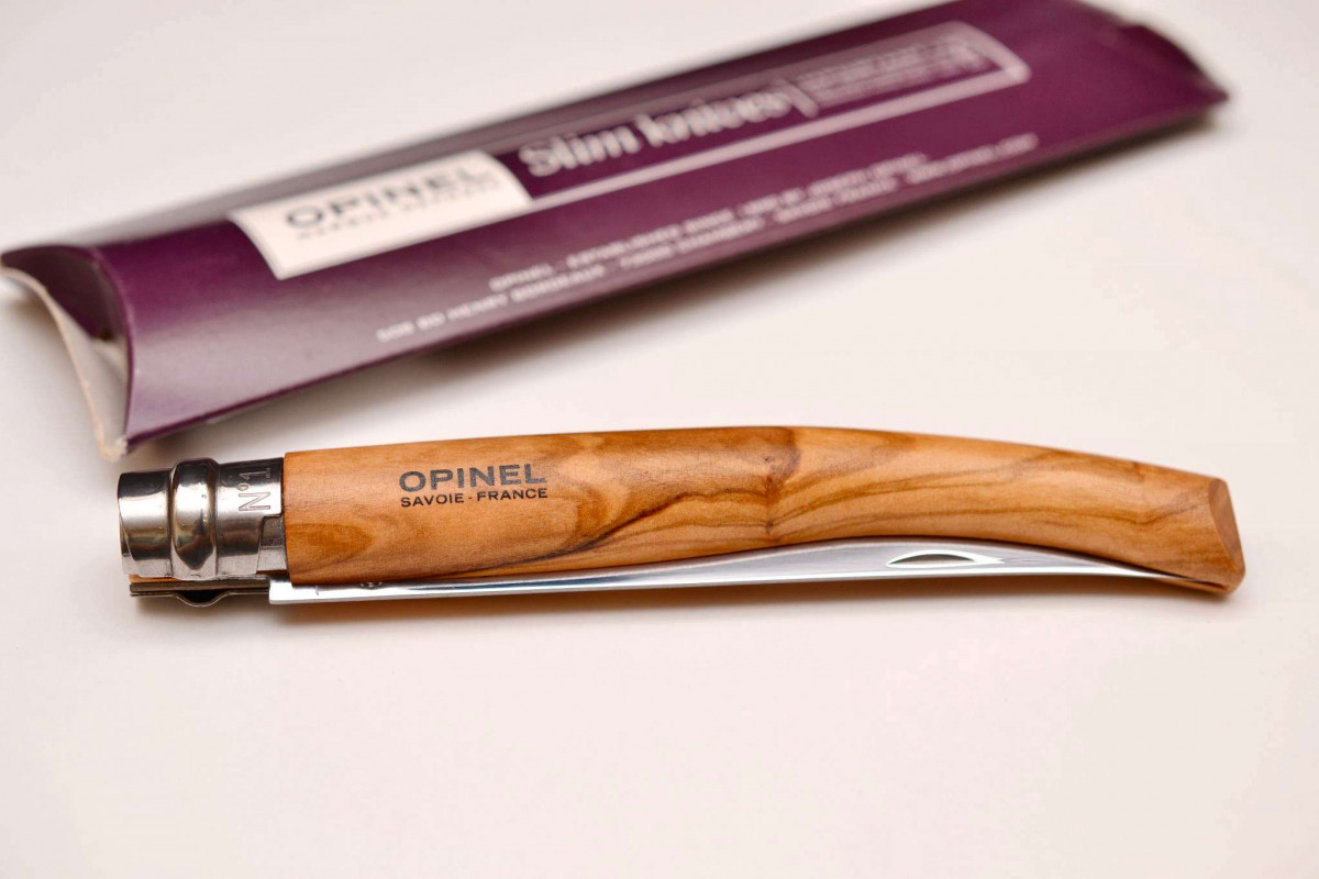 Нож Опинель №12 представляет собою филейную модель с длинным и узким лезвием. Кроме того, лезвие довольно неплохо гнется, благодаря чему нож удобно использоваться для отделения от костей филе рыбы. Подойдет он и для мяса или сыра, а вот более твердые продукты таким ножом лучше не резать, чтобы не повредить клинок. Длина лезвия Опинель №12с составляет 120 мм. С учетом же рукоятки, размер ножа достигает 270 мм. Однако его удобно хранить не только дома на кухне, но и брать с собою в любые поездки. Дело в том, что этот нож – складной.