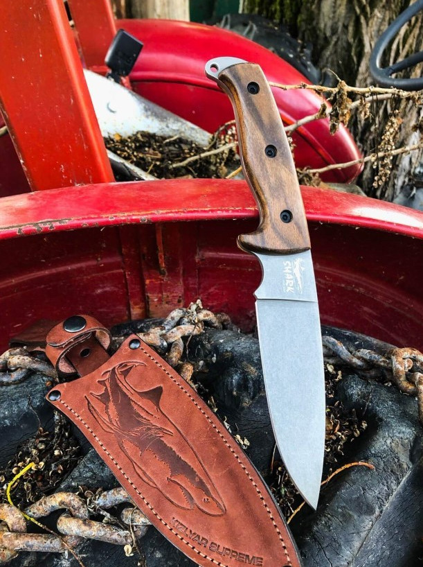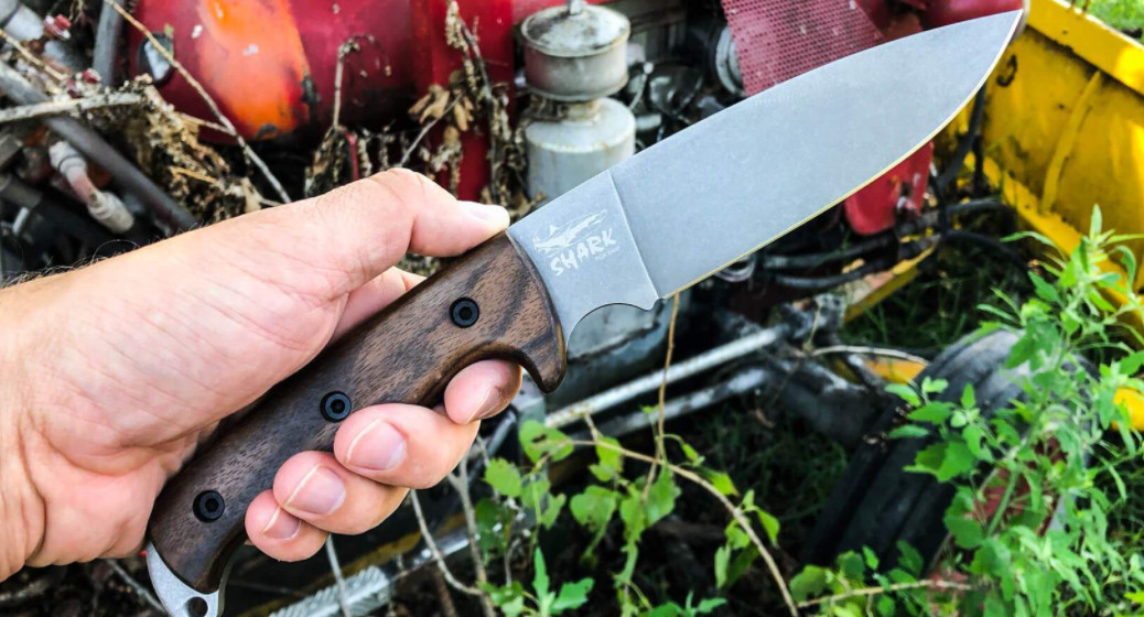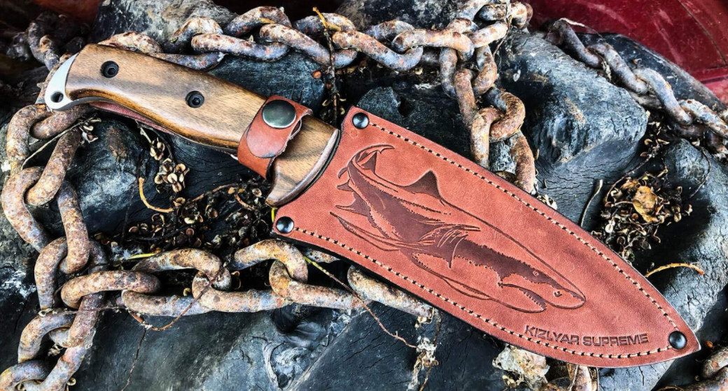 Нож Shark от Kizlyar Supreme относится к категории больших туристических ножей и заточен под большой спектр работ от заготовки дров до готовки на кухне. Модель из AUS-8 выпускается с вогнутыми спусками. У основания клинка сделан чойл, который предназначен для перехвата ножа при строгании или мелких работах. Нож комплектуется красивыми ножнами коньячного цвета, с глубоким тиснением в форме акулы. На ножнах предусмотрены два вида подвеса: свободны и жесткий фиксированный подвес.