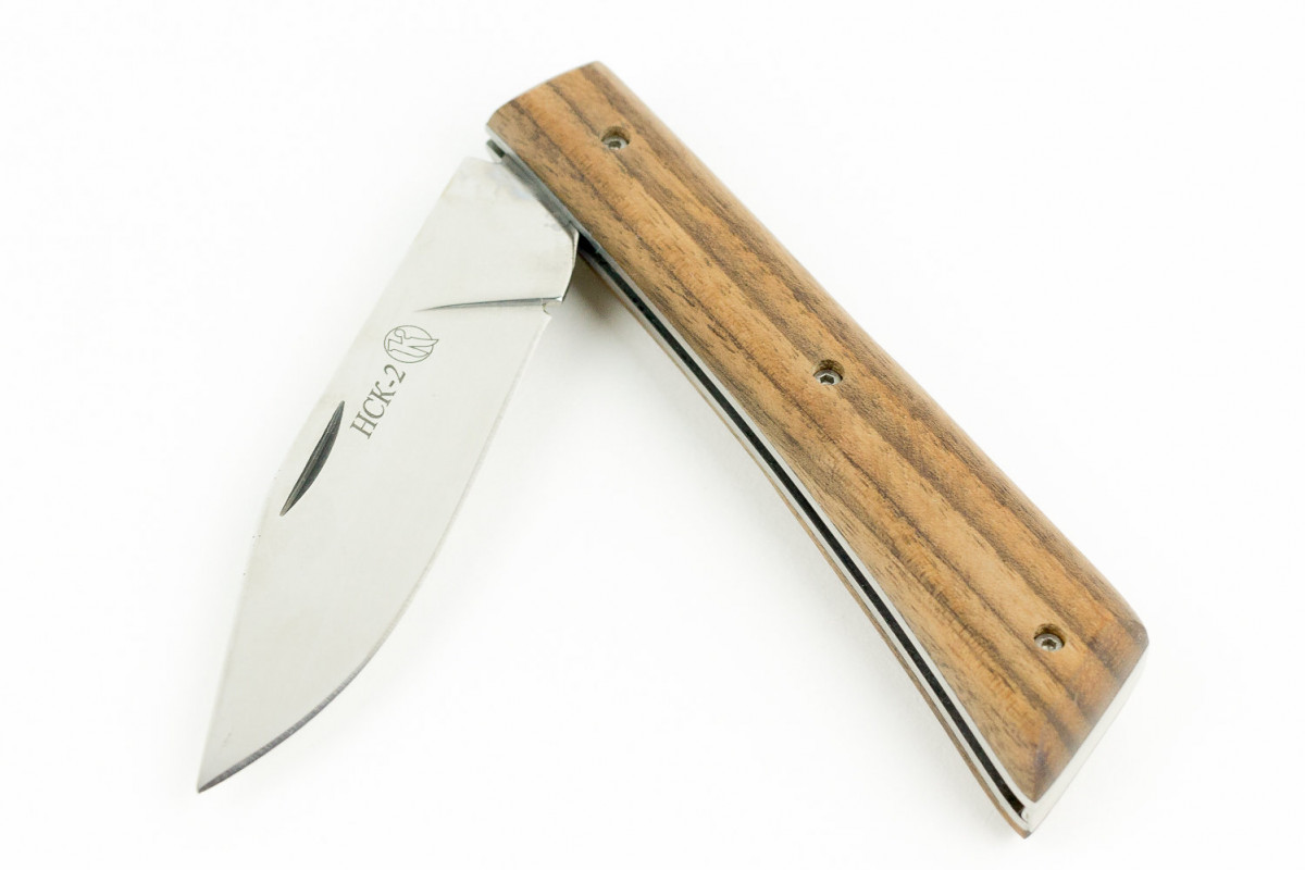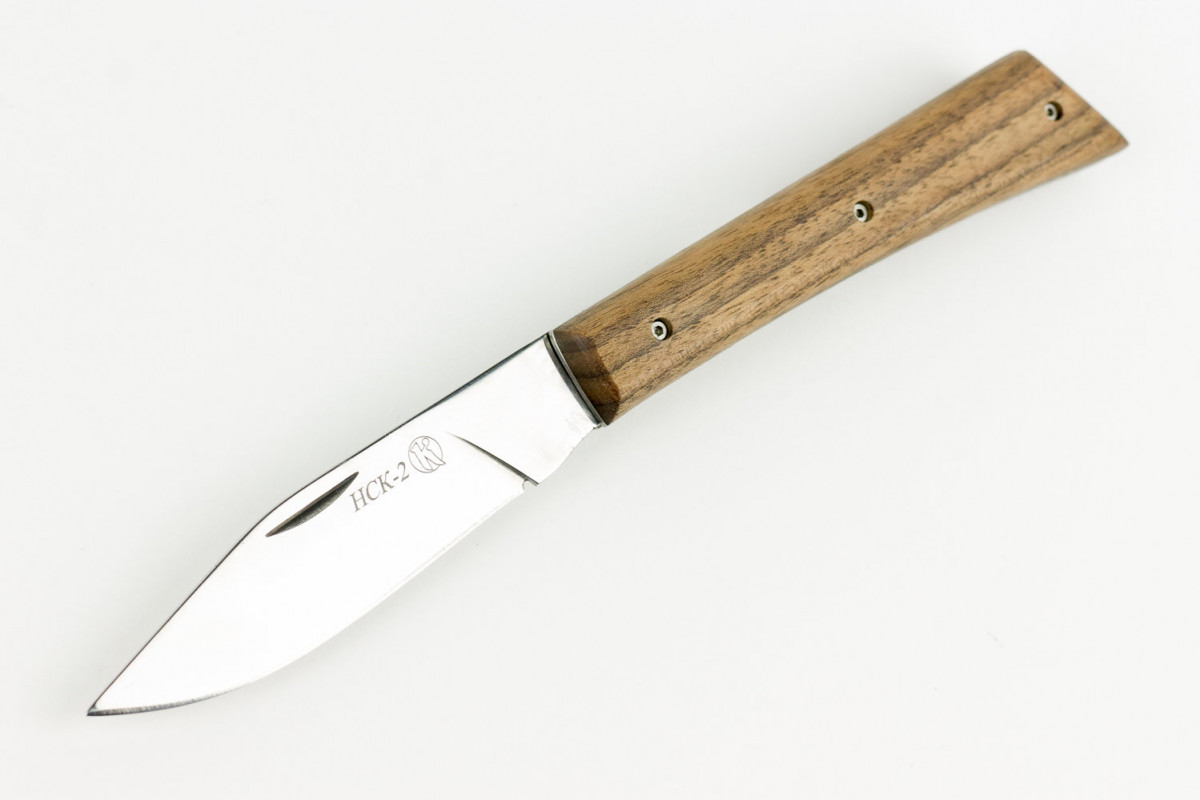 Прекрасный складной нож "НСК-2" внешне является очень простой и удобной моделью. За многие годы существования этой линейки ножей, нож "НСК-2" навсегда завоевал себе репутацию надежного и отличного помощника. Клинок выполнен из высоколегированной нержавеющей стали, что позволяет не сомневаться в надежности ножа. Рукоять изготовлена и прочного кавказского ореха, который придаёт удобный хват ножа в любых погодных условиях.