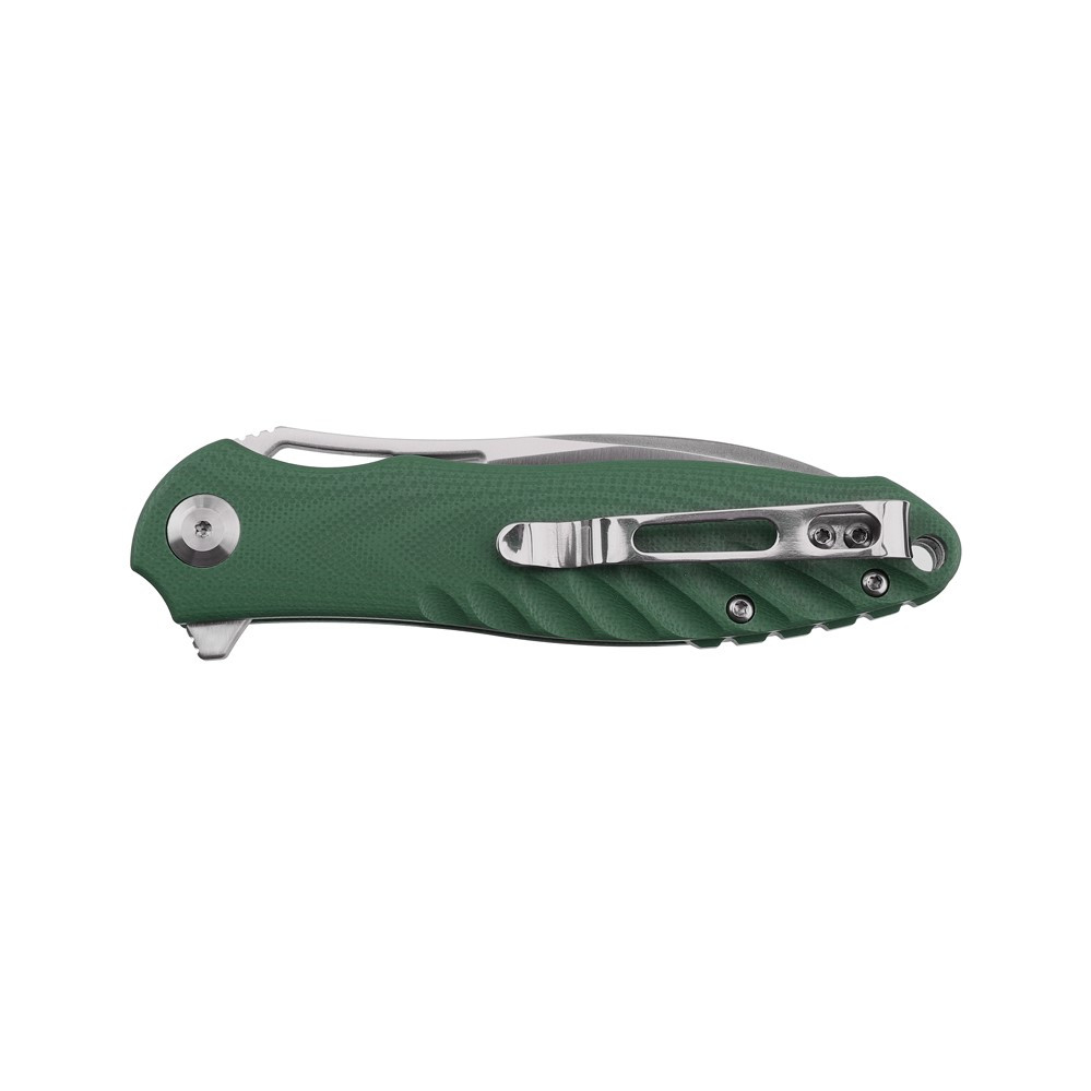 Ручка ножа изготовлена из материала G10, за счет этого она износостойкая, защищенная от воздействия высокой температуры, влаги, и устойчивая к повреждениям. Также этот материал, который представляет собой стеклотекстолит, запросто окрашивается. Он шероховатый на ощупь. Изделие удобно ложится в руку, не смещается, не скользит. Нож относят к категории так называемых флипперов.