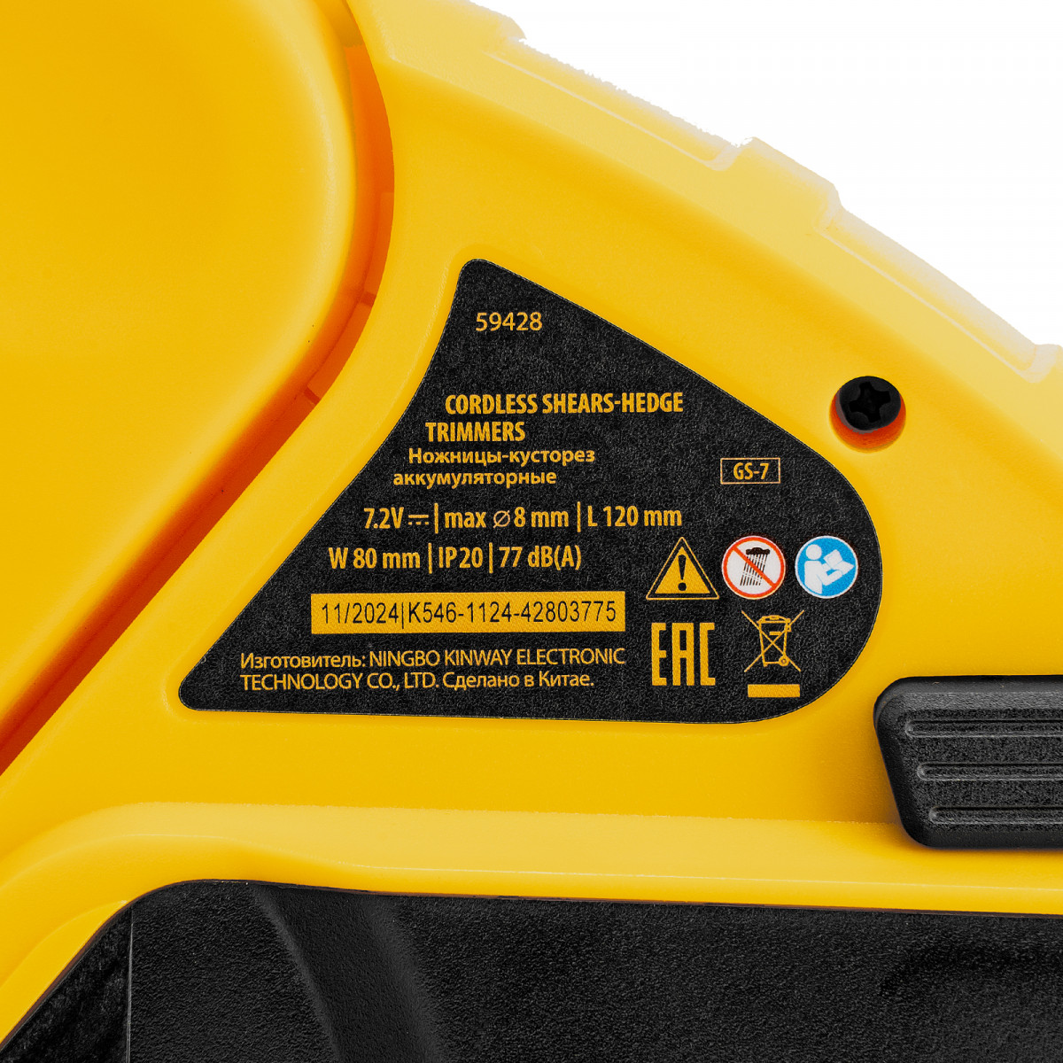 Ножницы-кусторез аккумуляторные GS-7, Li-Ion, 7,2 В Denzel