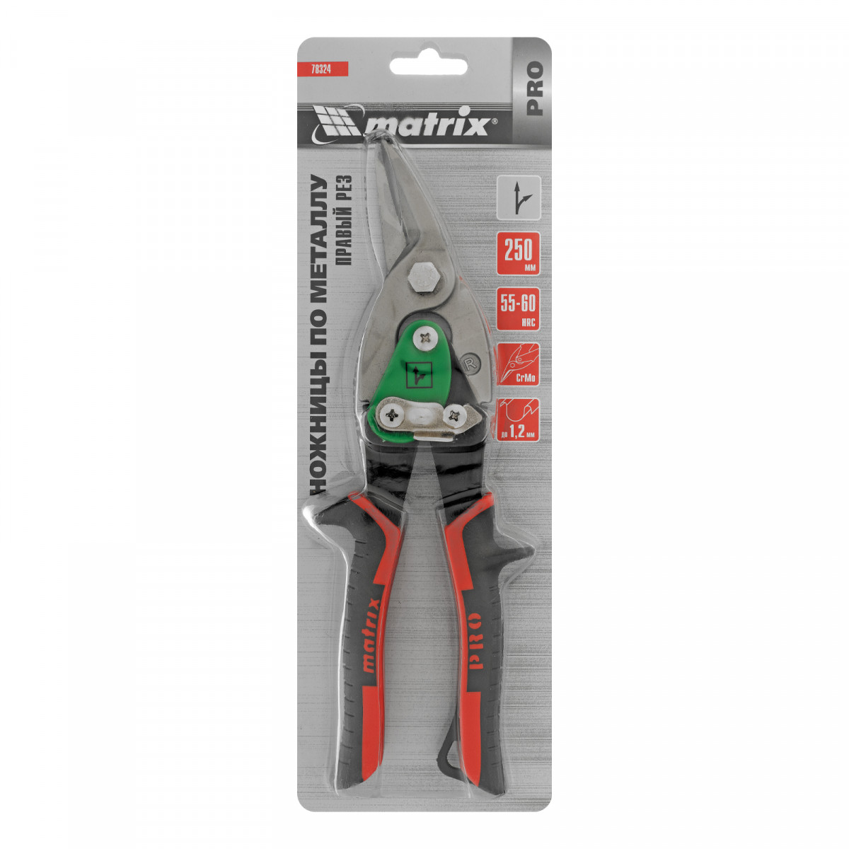 Ножницы по металлу, 250 мм, правый рез, сталь CRMO, двухкомпонентные рукоятки, PRO Matrix