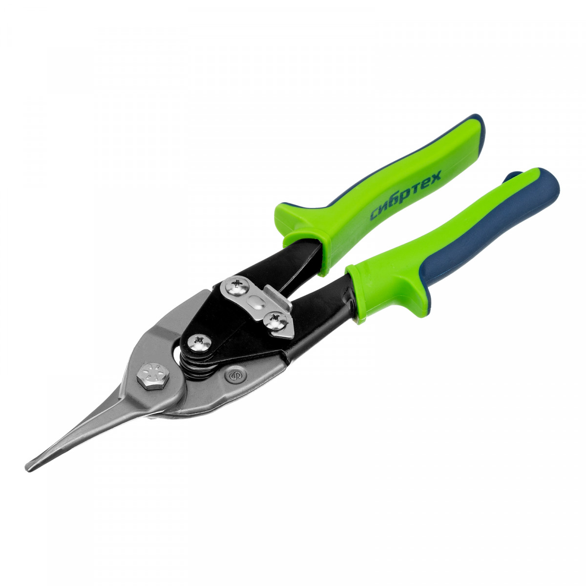Ножницы по металлу, 250 мм, прямой рез, сталь С55, двухкомпонентные рукоятки СИБРТЕХ