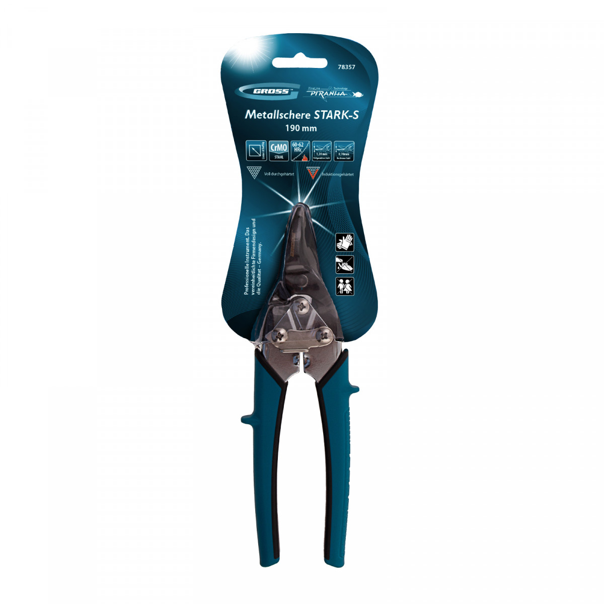 Ножницы по металлу Gross PIRANHA 78357 длиной 190 мм, из стали CrMo, с двухкомпонентными рукоятками, выполняют точный прямой рез по листовым заготовкам. Двойной рычажный механизм облегчает передачу усилия при резке твердых материалов. Ножницы имеют компактные размеры и удобны для работы в стесненных условиях. Подойдут для профессионального и домашнего использования.