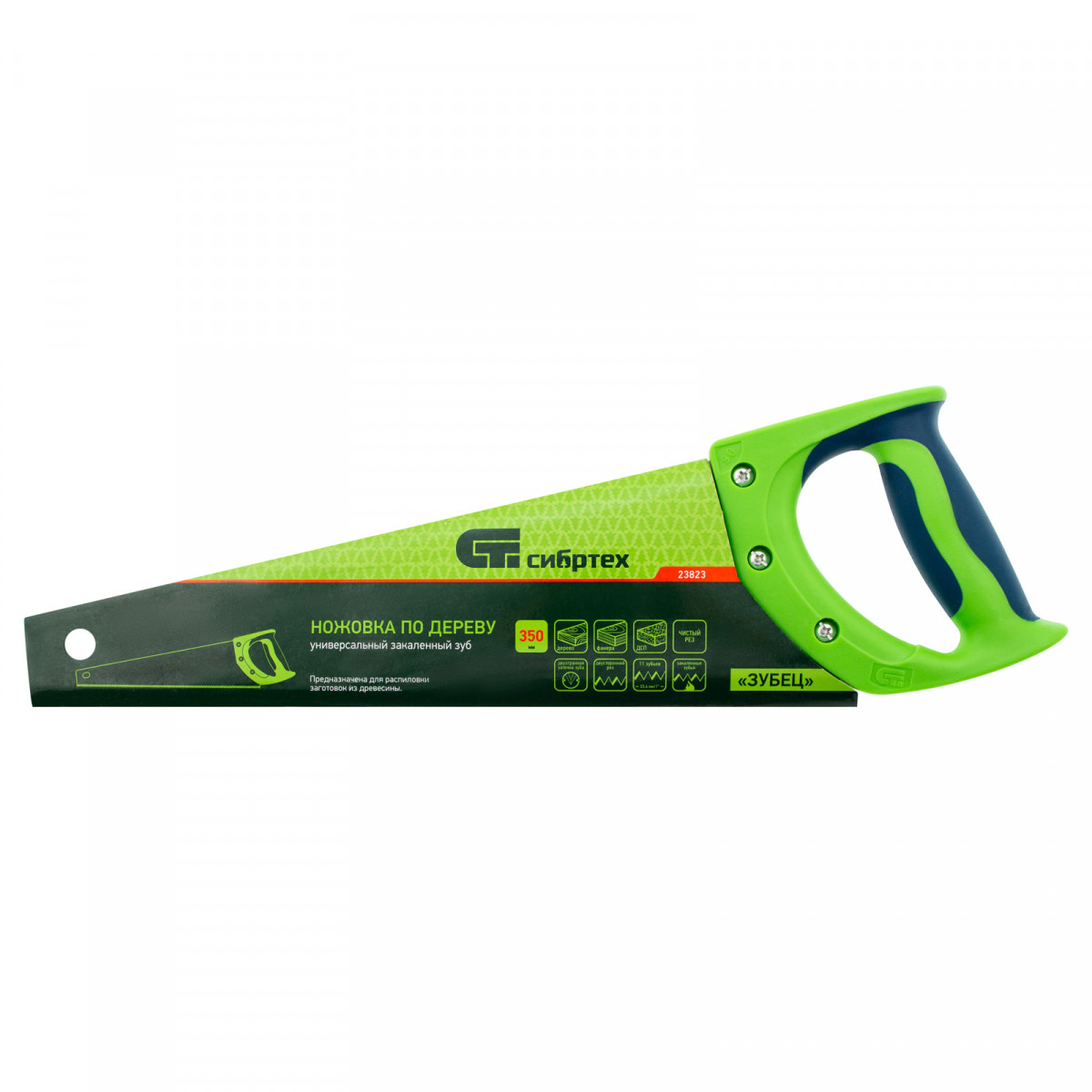 Ножовка по дереву "Зубец", 350 мм, 11 TPI, зуб 2D, каленый зуб, 2-х компонентная рукоятка Сибртех