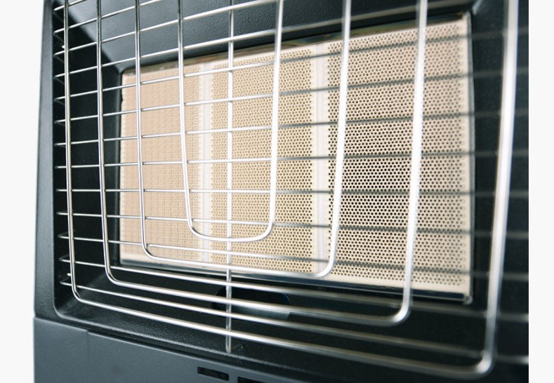 При отключении электричества это надёжный источник тепла. Автоматическое отключение при опрокидывании, счётчик контроля за углекислым газом. Керамическая поверхность при максимальном нагреве не обжигает. Легко перекатить на колесиках в любое место.