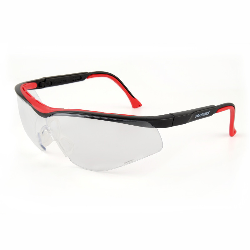 СИЗ глаз для защиты от механических воздействий и неионизирующих излучений, капель и брызг жидкостей. Очки открытые с мягкой вставкой из ТЭП в области лба, двухкомпонентными регулируемыми по длине и углу наклона заушниками с мягкими вставками из ТЭП защищают от высокоскоростных летящих частиц с низкоэнергетическим ударом 0,84 Дж.