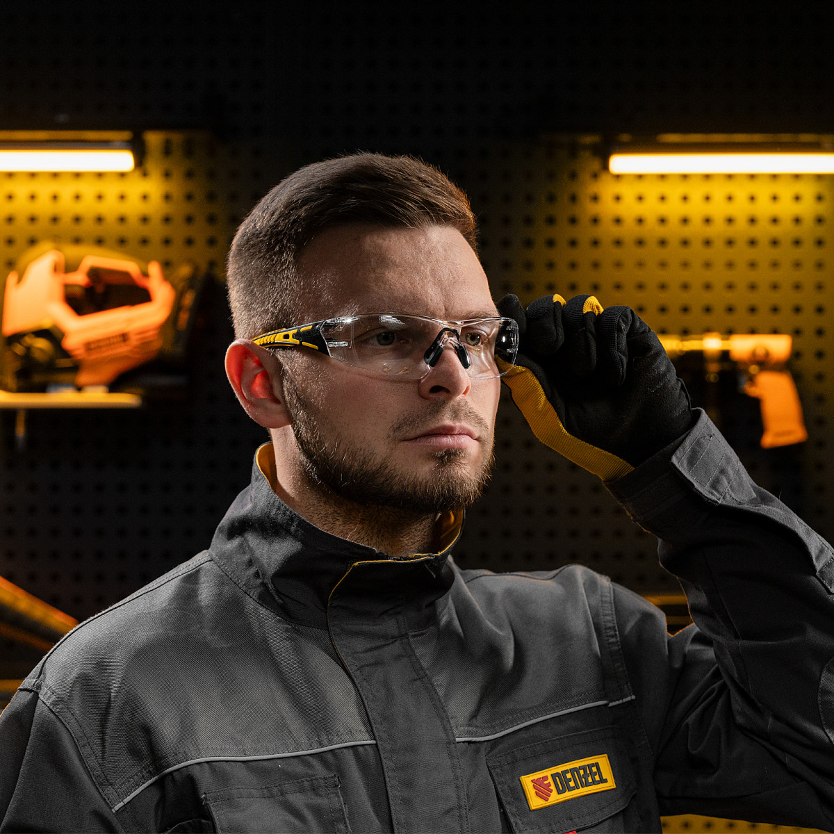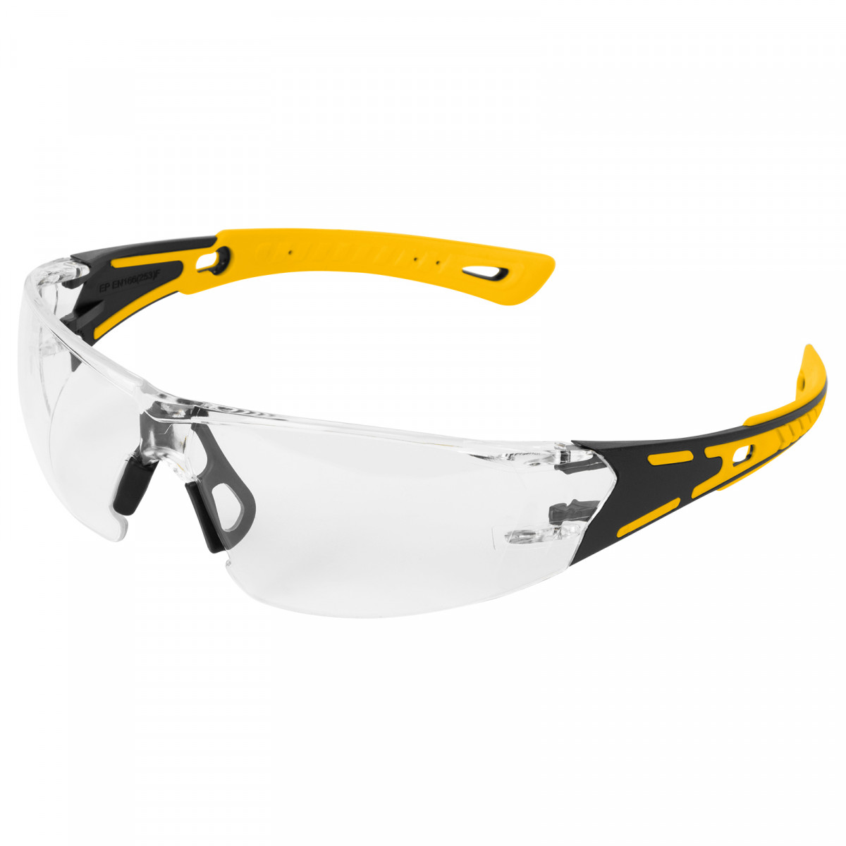 Легкие универсальные защитные очки открытого типа Denzel 89191 с поликарбонатными прозрачными линзами и 2-компонентными дужками предназначены для защиты глаз от механических повреждений и УФ-излучения. Очкам присвоен класс механической прочности F, они обеспечивают защиту от высокоскоростных частиц с низкоэнергетическим ударом V=45 м/с. Очки используются во время работы с электро- и бензоинструментом, на производстве и в быту.