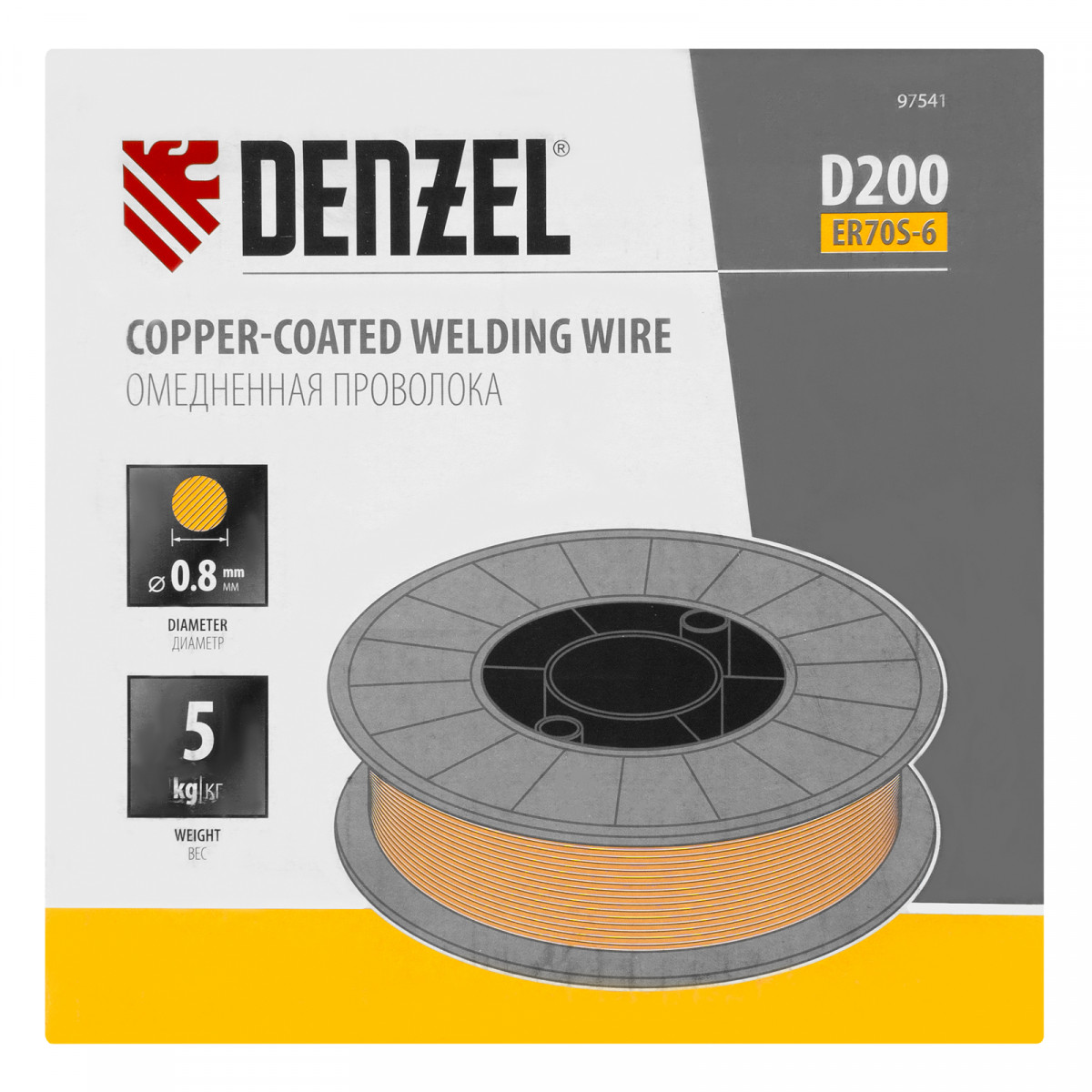 Омедненная проволока ER70S-6, диам. 0,8 мм, 5 кг, диам. катушки D200 Denzel