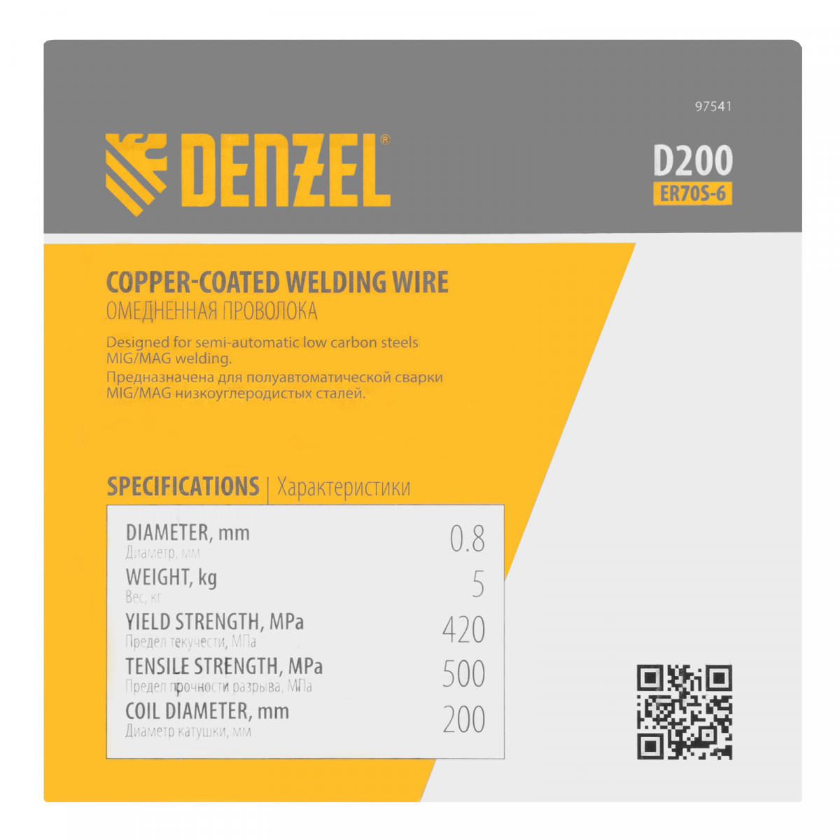 Омедненная проволока Denzel ER70S-6 97541 диаметром 0,8 мм и весом 5 кг, на катушке типа D200, предназначена для полуавтоматической сварки MIG/MAG углеродистых и низколегированных сталей в среде защитных газов. Необходима профессиональным сварщикам, пригодится также частному мастеру.