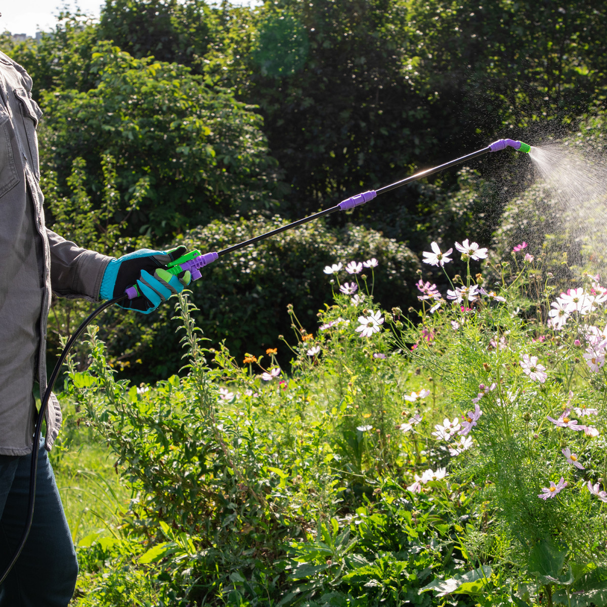 • Контроль подачи жидкости — опрыскиватель оснащен регулируемой распыляющей головкой.