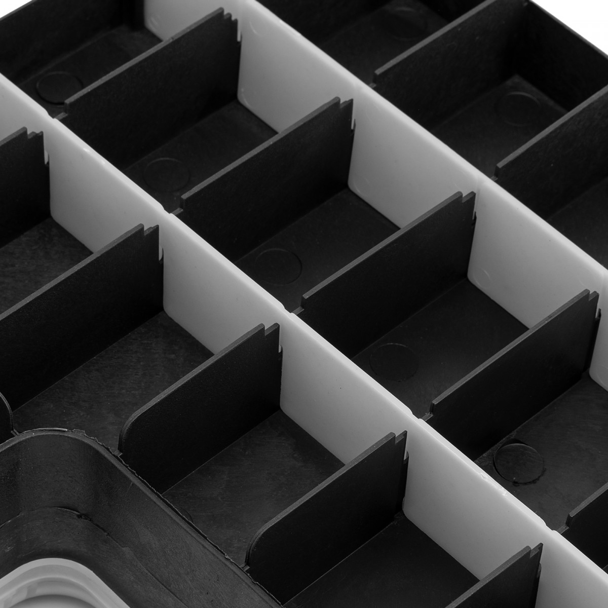 • Органайзер оснащен 32 секциями различного размера для удобства хранения мелких и крупных предметов.