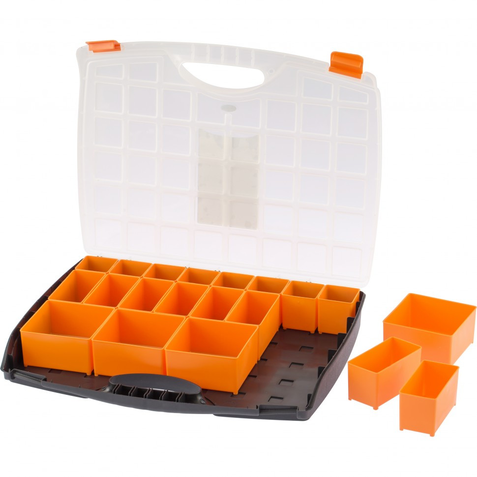 • Защелки и ручка обеспечивают удобство транспортировки органайзера.