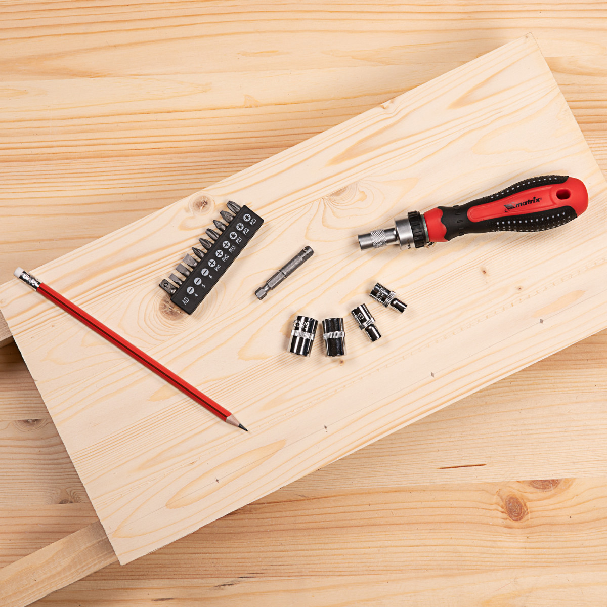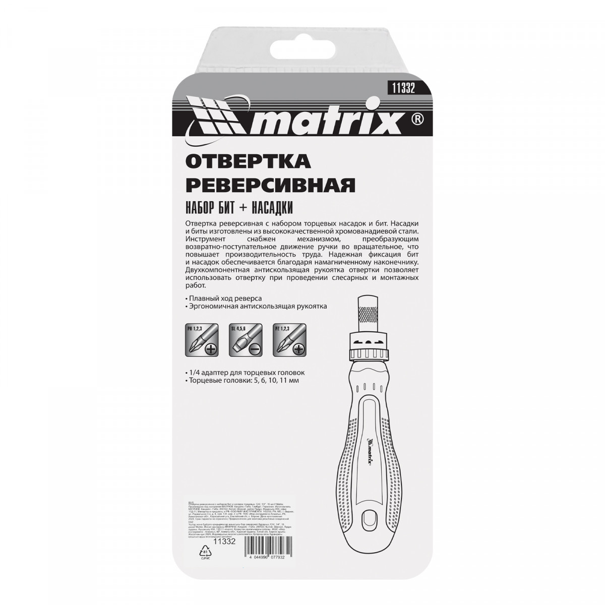 Отвертка реверсивная с набором бит и насадок торцевых, CrV, 1/4, 16 шт Matrix