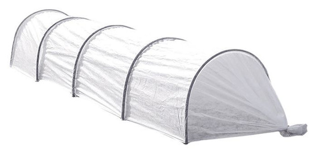 Парник изготовлен из труб ПНД диаметром 16мм вшитых в укрывной материал "Урожайная сотка №42" (ширина материала 2,1м). Благодаря современным полимерным материалам парник легок и компактен. Он без труда размещается в багажнике автомобиля, быстро устанавливается. Для демонтажа нужно только выдернуть дуги из земли, сложить их вместе и обернуть материал вокруг дуг. С этой работой справится даже начинающий садовод.