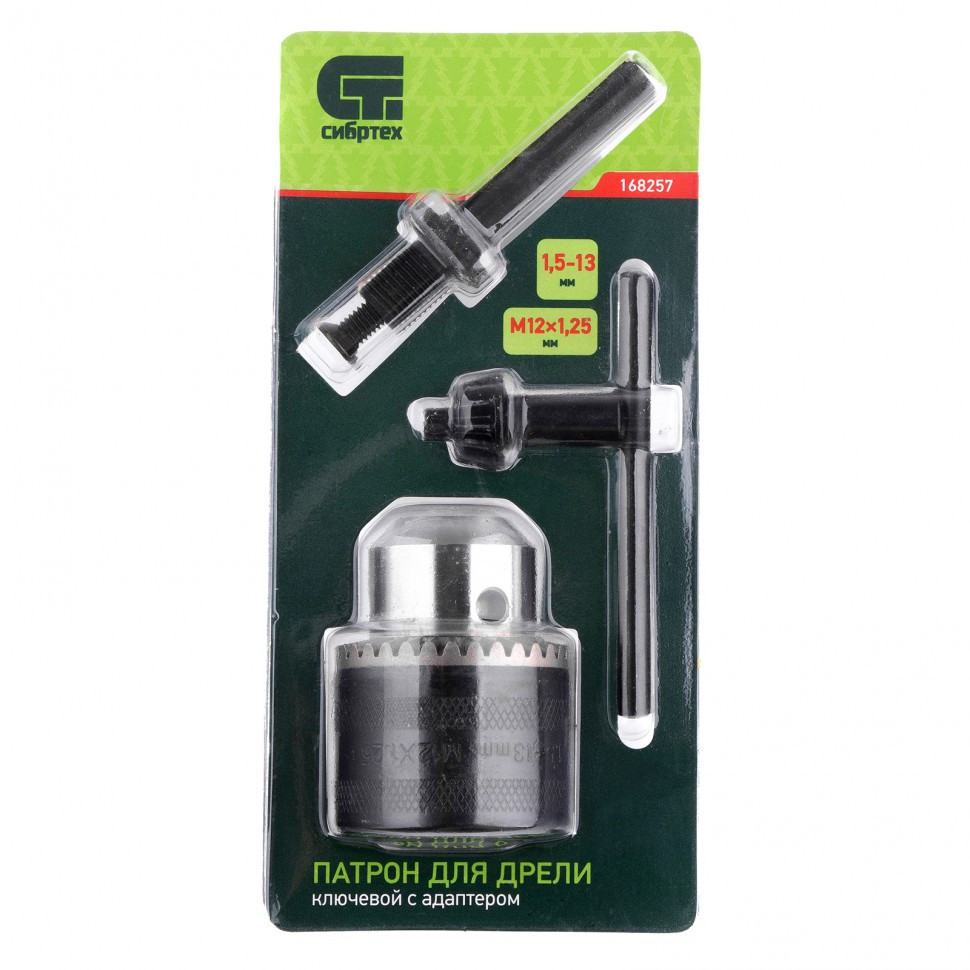 Ключевой патрон Сибртех 168257, тип соединения М12х1,25, под оснастку 1,5-13 мм, с адаптером SDS PLUS, можно использовать как с дрелями, так и с перфораторами. Позволяет надежно зафиксировать сверло, работать без риска его прокручивания и выпадения. Пригодится в качестве основного или запасного патрона на строительной площадке.