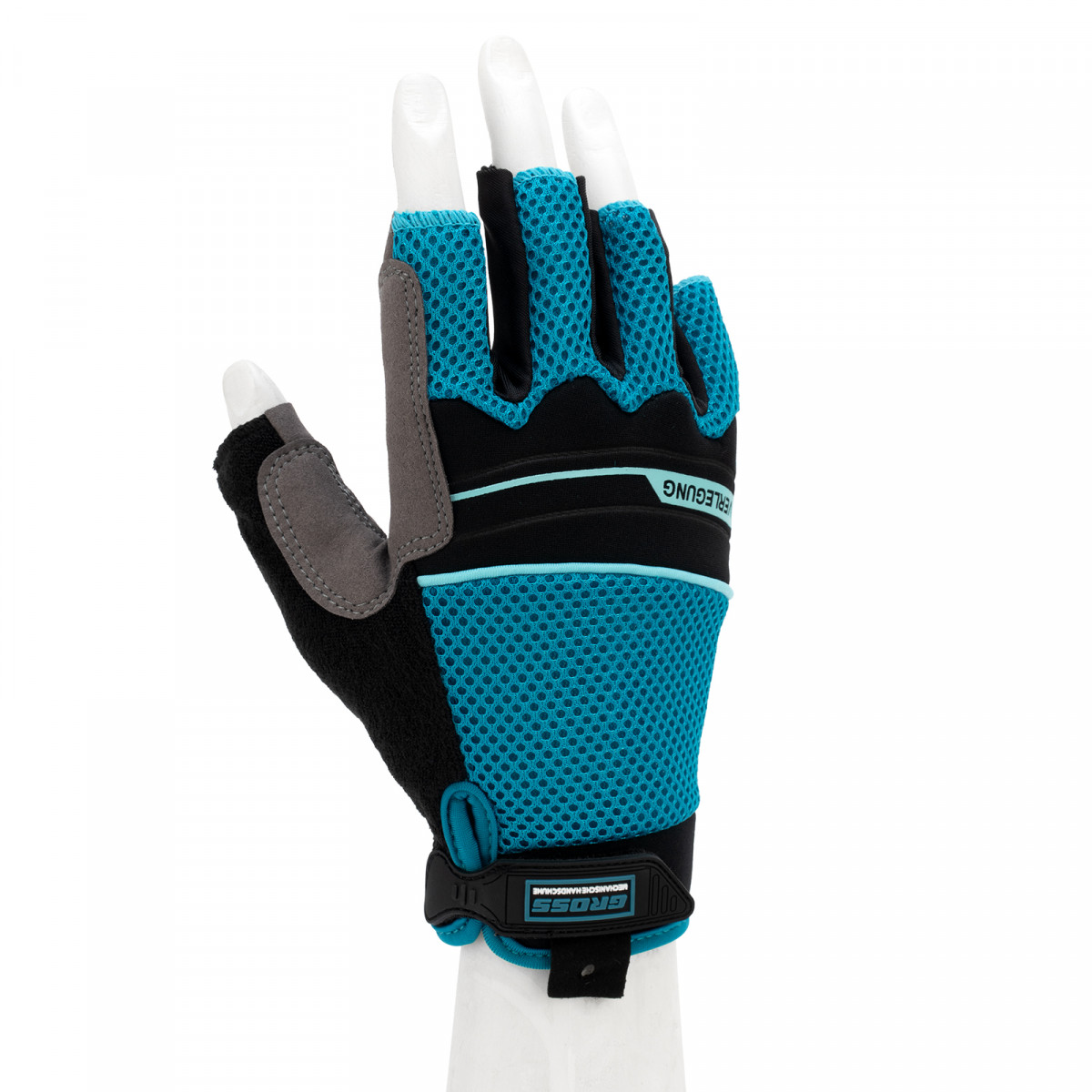 Перчатки комбинированные облегченные Gross AKTIV 90309 с открытыми пальцами, размера L (9), служат для защиты рук от механических повреждений и образования мозолей. Формованные накладки на ладонях препятствуют появлению синяков и ссадин. Открытые пальцы позволяют использовать перчатки в жаркую погоду, при этом подверженные износу части перчатки остаются защищенными. Изделия могут использоваться при проведении строительных и ремонтных работ, а также во время занятий спортом или активного отдыха.
