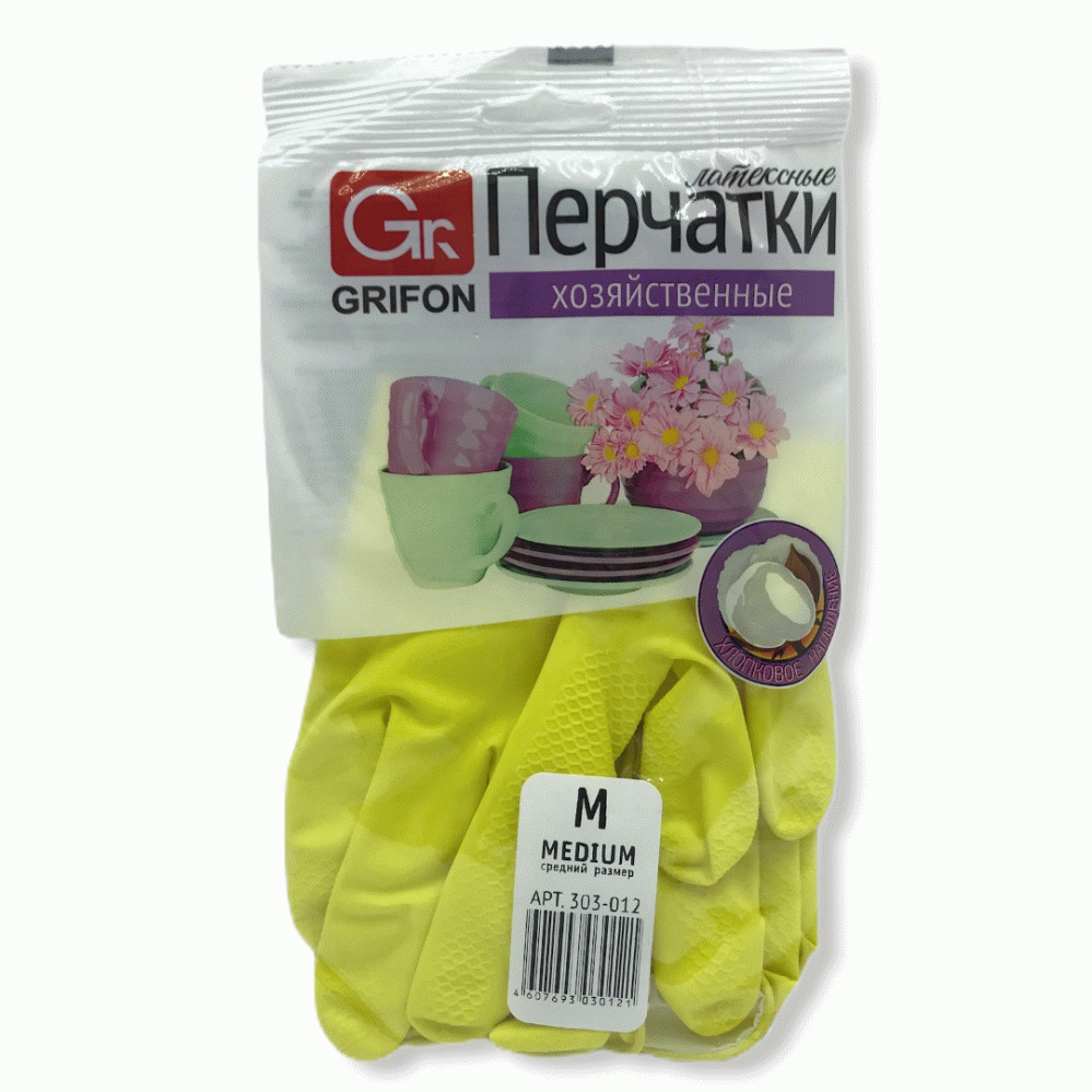 Перчатки латексные GRIFON с хлопковым напылением, р-р М