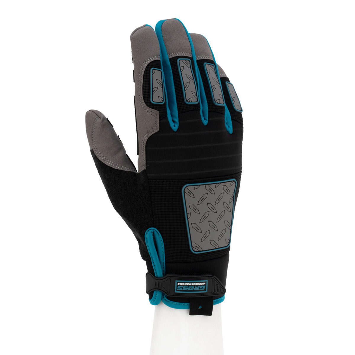 Универсальные усиленные перчатки Gross DELUXE 90325 с защитными накладками, размера L (9), служат для защиты рук от механических повреждений и образования мозолей. Тонкие и износостойкие защитные накладки из ПВХ на тыльной стороне ладони и пальцах дополнительно предохраняют руки от механических повреждений. Формованные накладки на ладонях препятствуют появлению синяков и ссадин. Изделия могут использоваться при проведении строительных и ремонтных работ, а также во время занятий спортом или активного отдыха.