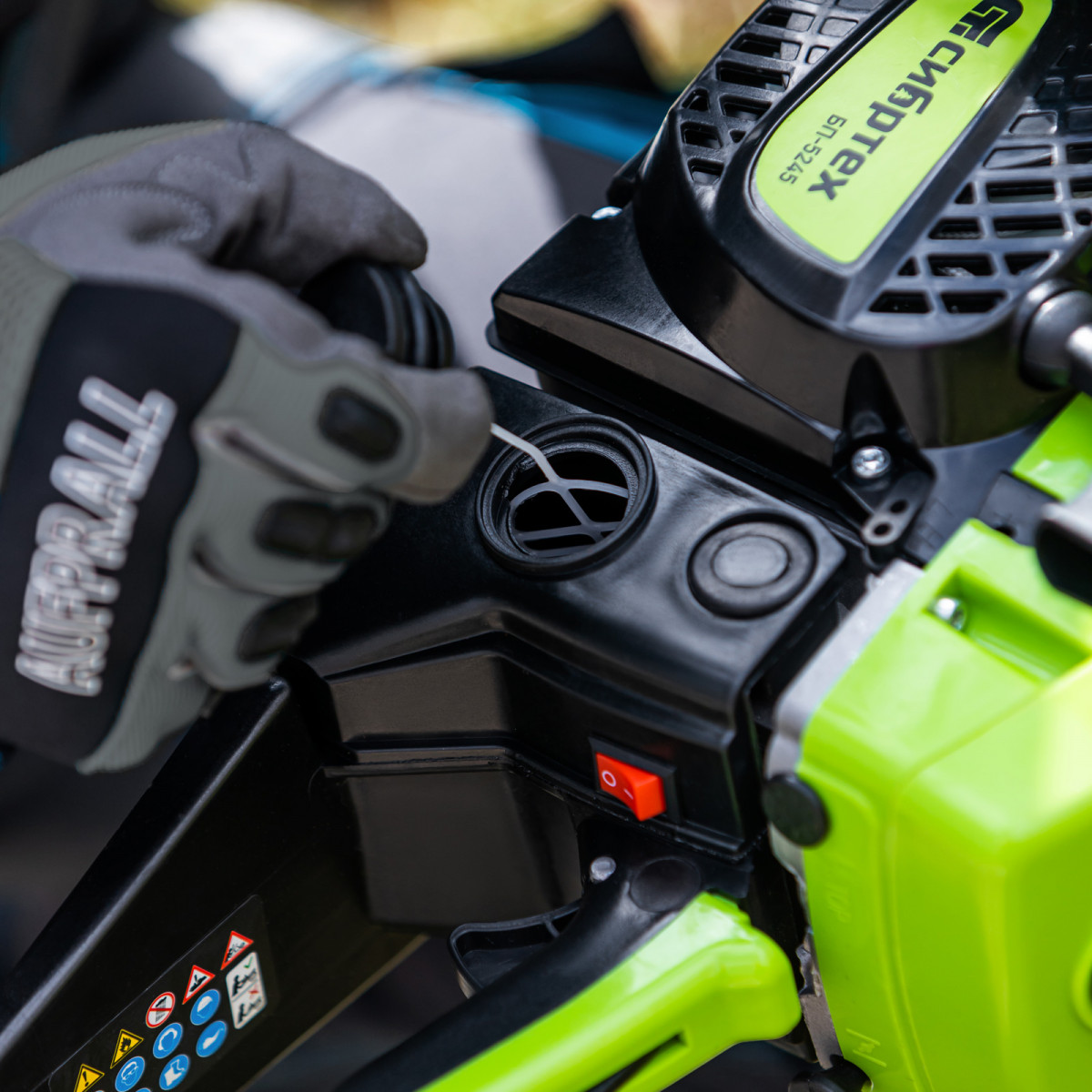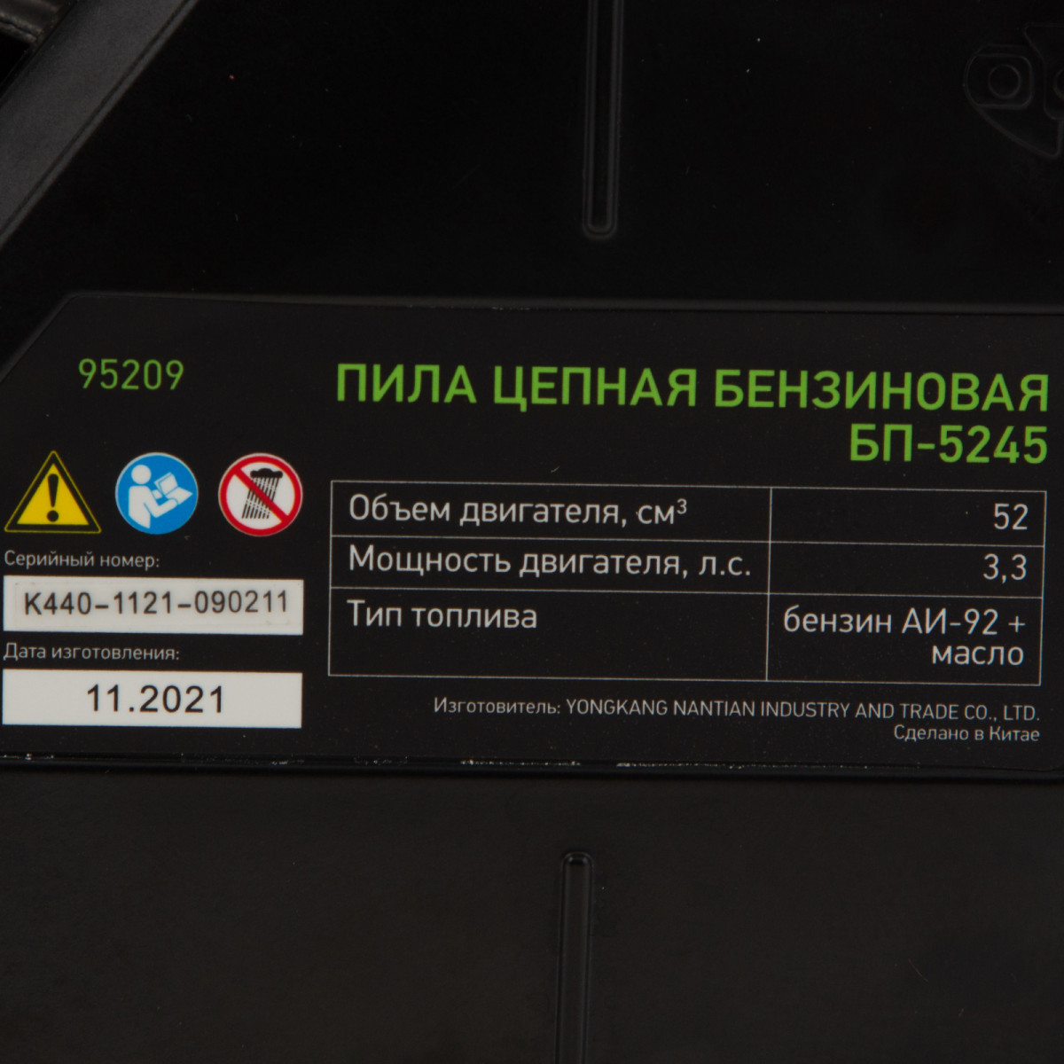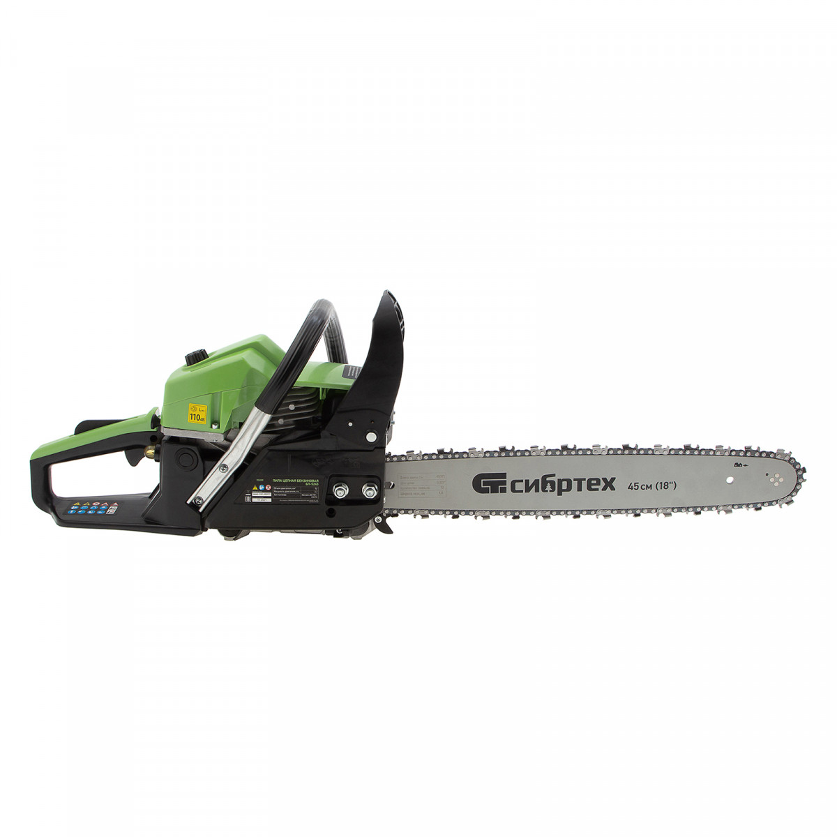 Пила цепная бензиновая Сибртех БП-5245 95209 с двухтактным двигателем объемом 52 см3 и мощностью 3,3 л.с предназначена для распиловки древесины различных пород, заготовки дров, спиливания веток и крупных сучков. Пригодится во время ремонта, строительства, благоустройства садового участка и при выполнении бытовых задач. Мощный и экономичный двигатель в сочетании с качественной шиной длиной 45 см (цепь с 72 звеньями с шагом 0,325 дюйма и шириной паза 1,5 мм) позволяют достичь наилучших результатов да.